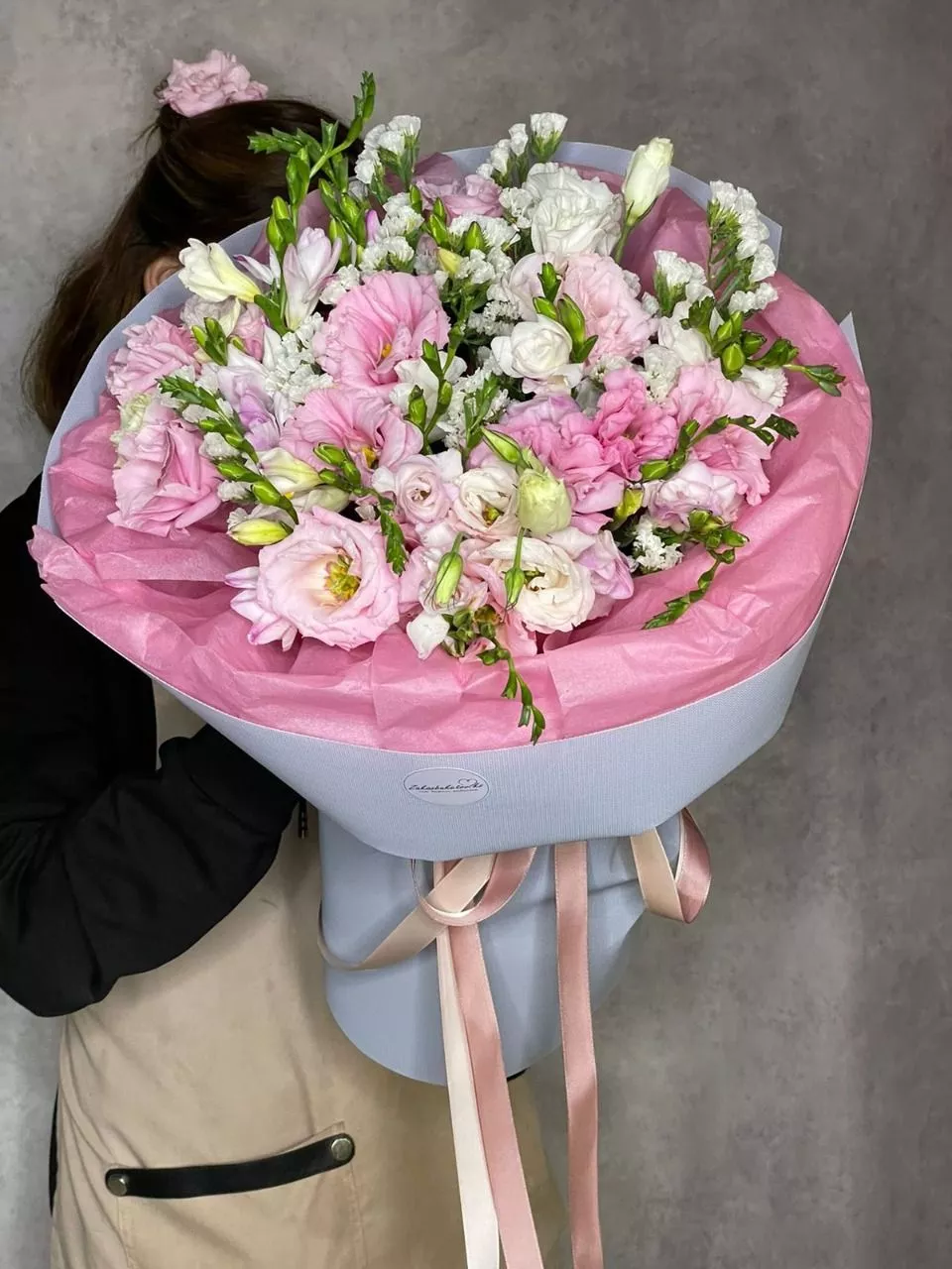 Сборный букет "Фимиам" состоит из лизиантусов и фрезии в оформлении. Выбрав букет от ZakazBuketov, Вы скрасите день обладательницы букета и подарите ей незабываемые эмоции.