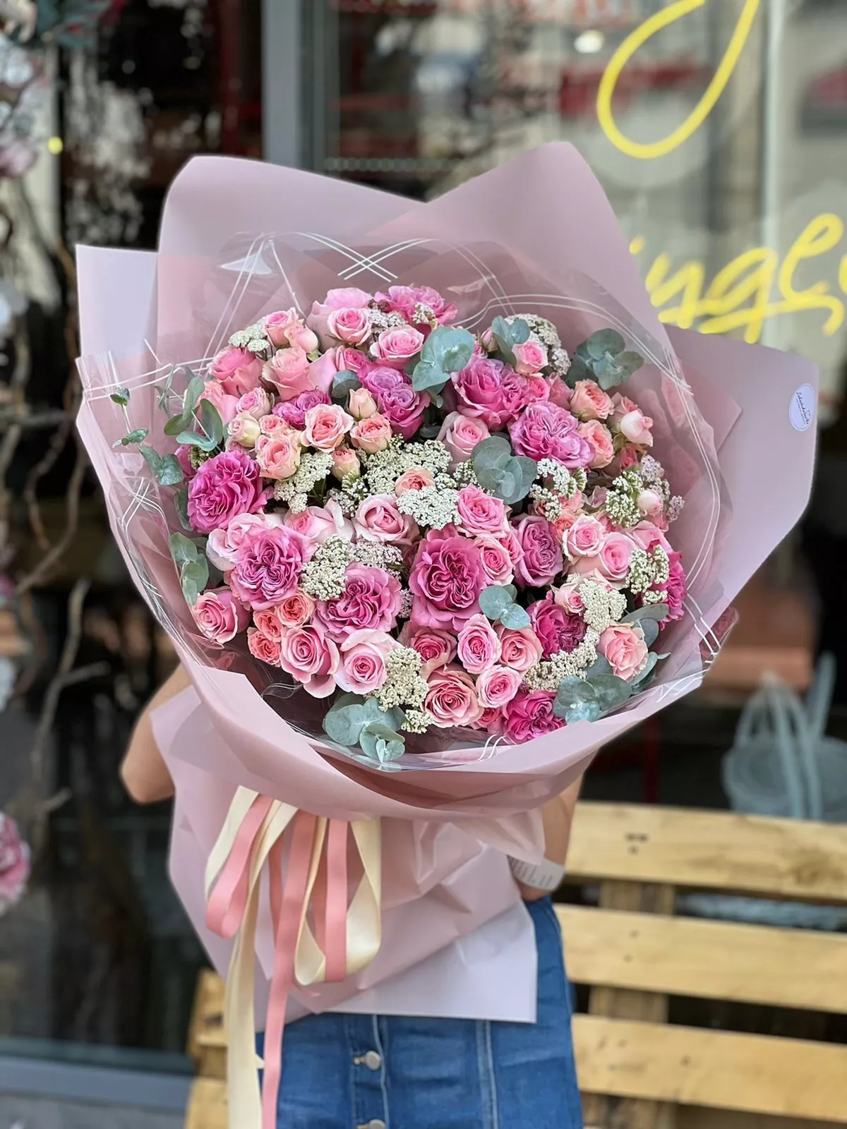 Состав выдерживается в полном соответствии с указанным составом композиции. При покупке евробукета, возможно, несовпадение цветовой гаммы букета, представленного на фотографии.