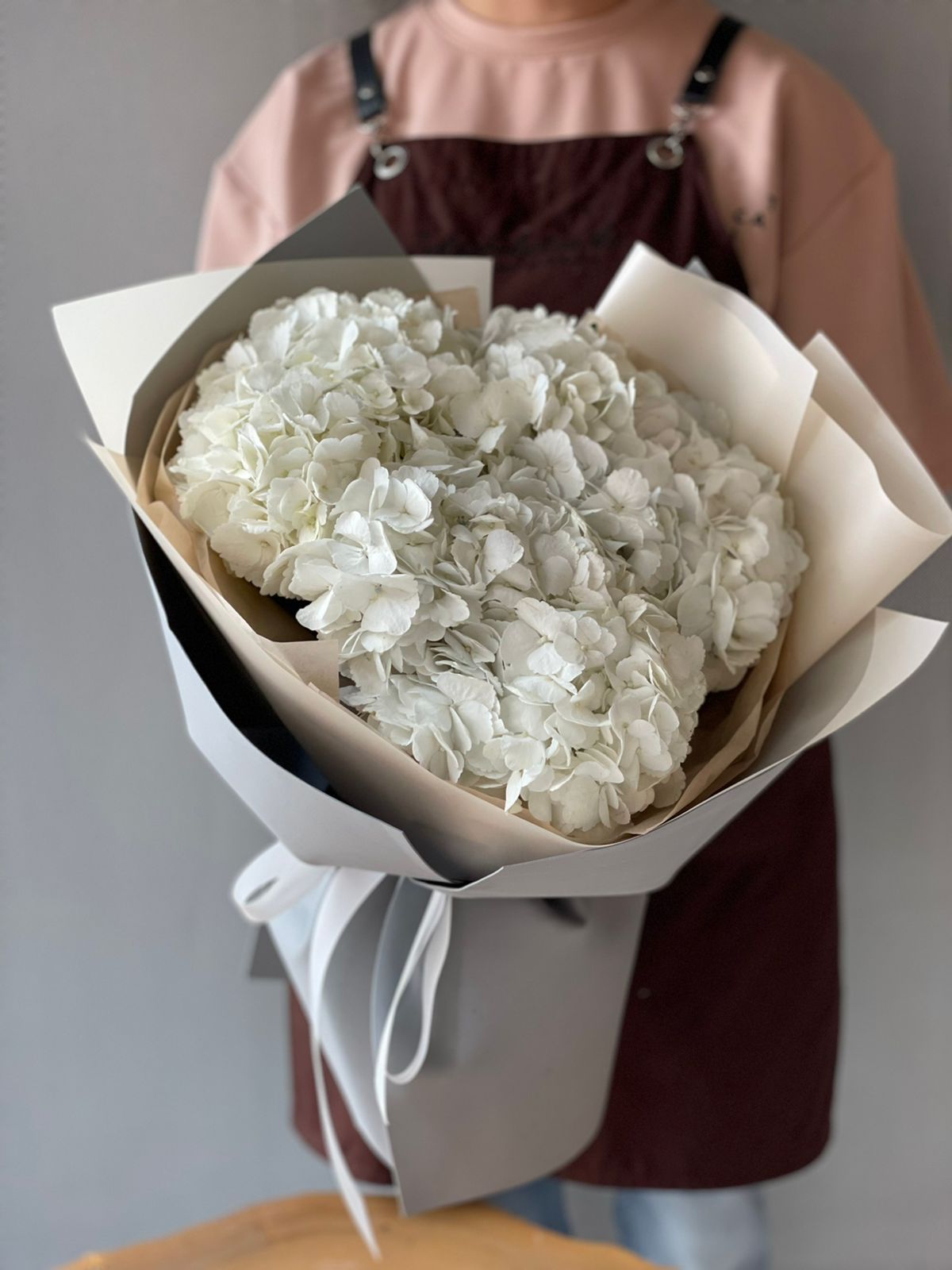 3 белые гортензии в оформлении Это признание в любви в наивысшей точке, и красота в последней инстанции