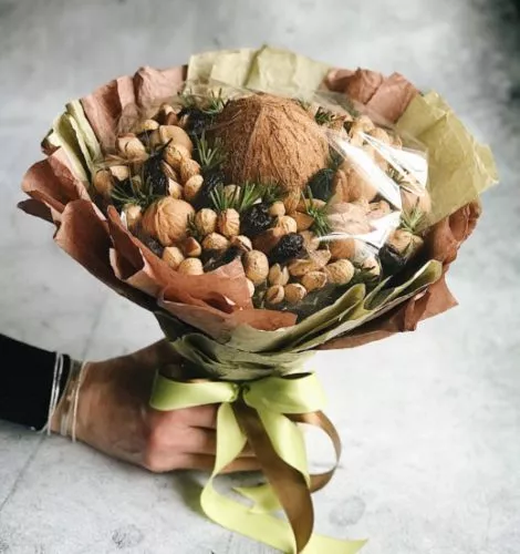 Букет из орехов" Ригадо" — вкусный букет в подарок для любимых и близких людей. Полезный подарок на день рождения, юбилей или в знак внимания от Zakazbuketov.kz