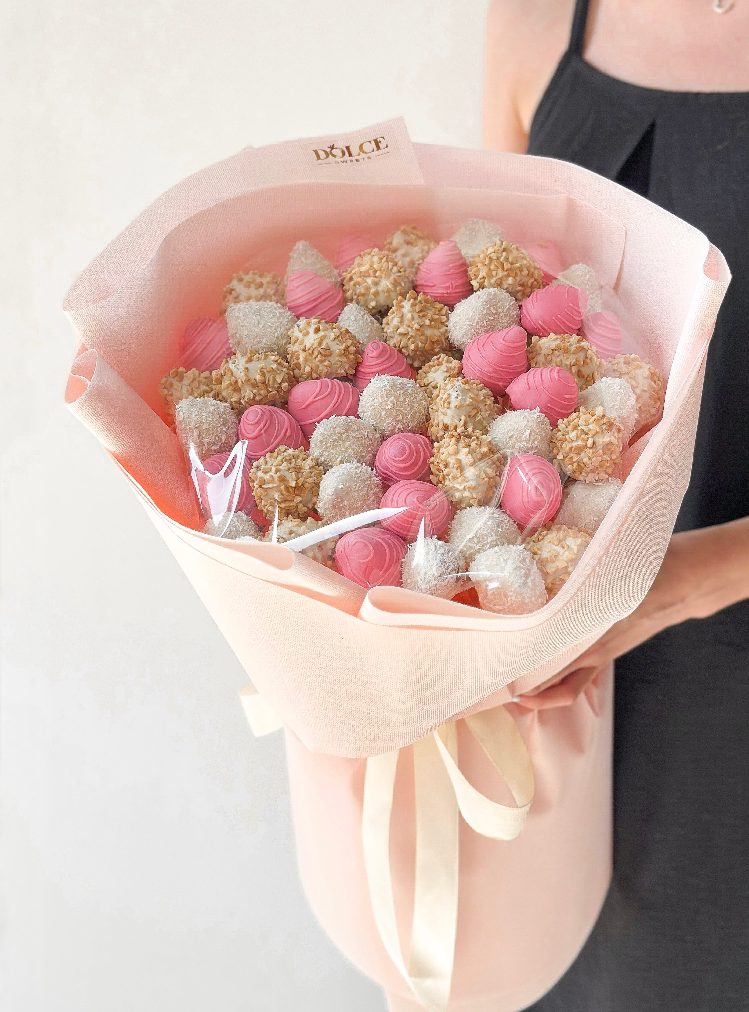 Вкусный букет из свежей и сочной клубнички в итальянском шоколаде обрадует своего получателя!