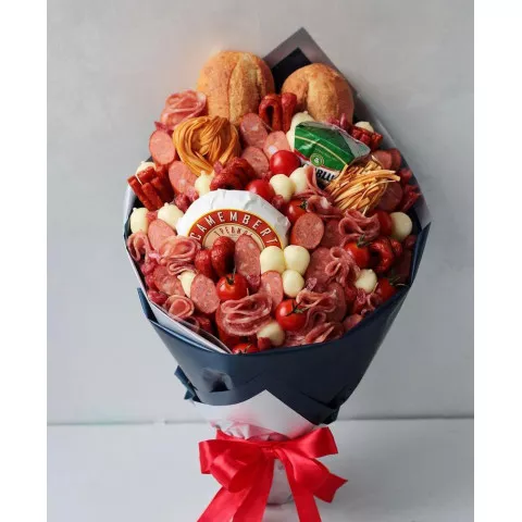 Если вы терзаетесь мыслью о том, что подарить вашему дорогому и любимому мужчине на юбилей, 23 или 14 февраля, если вы всерьез задумались как удивить и порадовать его в день рождения или на годовщину...ну, или просто хотите сделать ему приятный сюрприз или подарок без повода.. закажите съедобный букет из колбас, сыров, мясных снеков черри и других продуктов от Zakazbuketov.kz