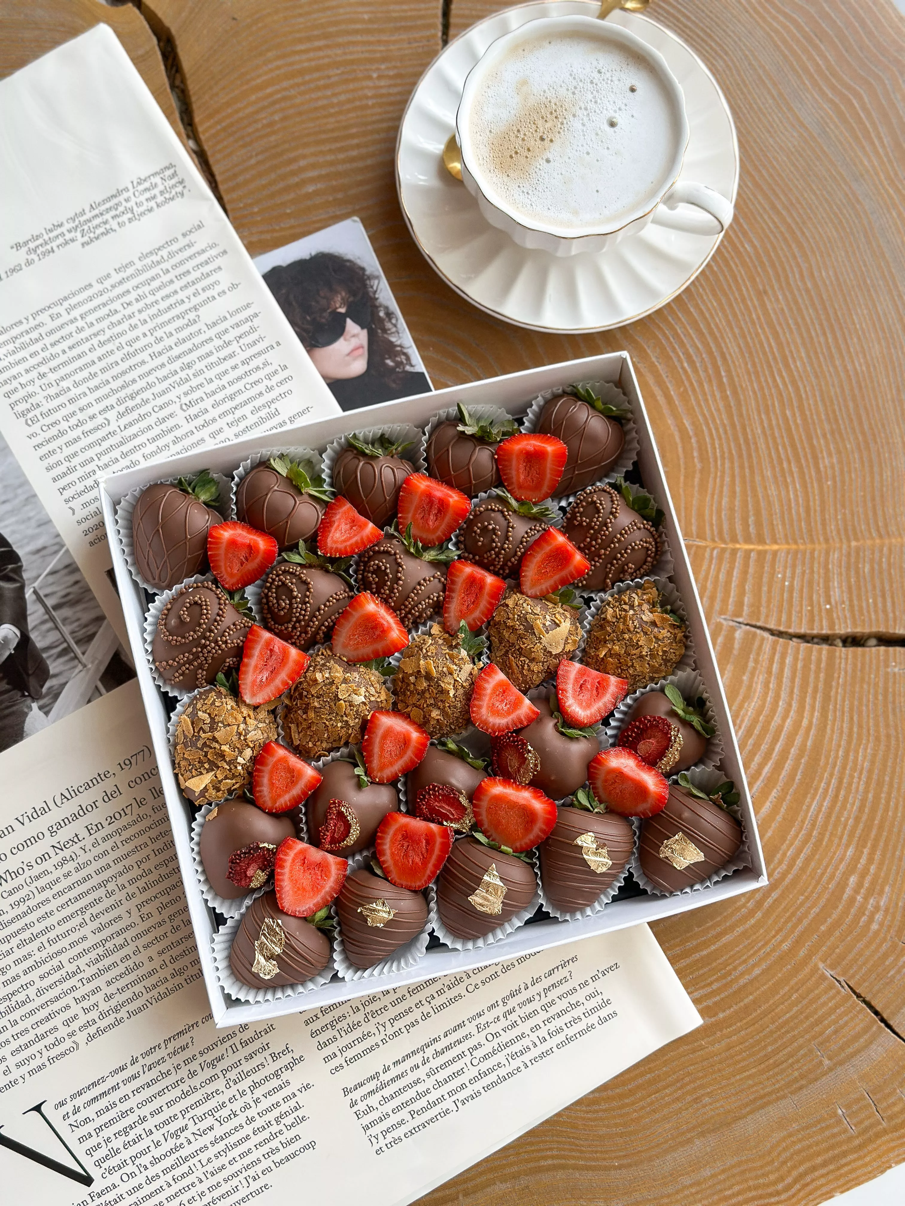 Открытка - 1; Клубника в шоколаде - 25; Коробочка для клубники - 1; Ягодный декор - 1;