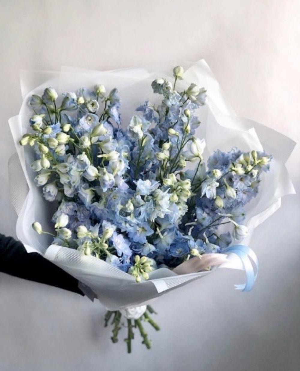 Моно букет из дельфиниумов, яркий, сочный и летний. Если Вы хотите подарить незабываемые эмоции дорогому человеку — закажите доставку цветов в Zakazbuketovkz