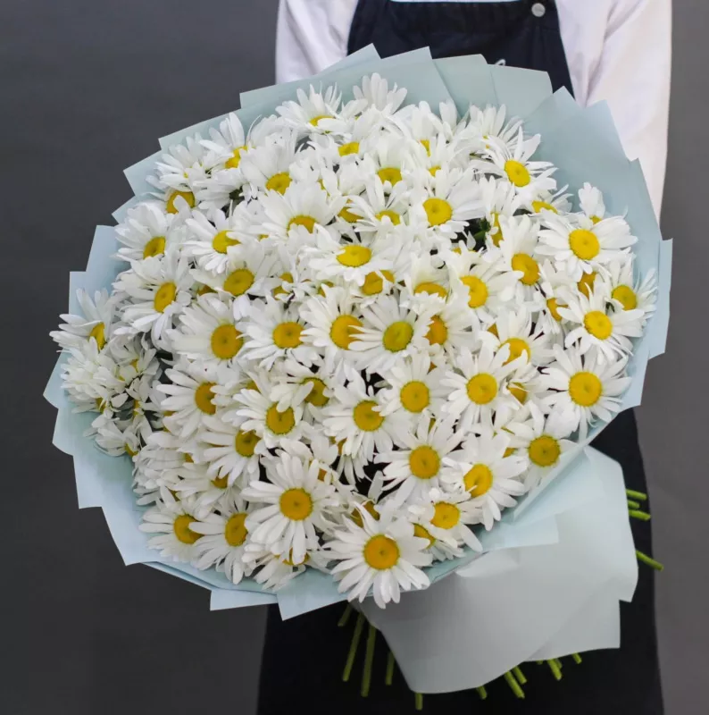 Букет из ромашек, нежный и трепетный- идеален для утонченных романтичных натур. Если Вы хотите подарить незабываемые эмоции дорогому человеку — закажите доставку цветов в Zakazbuketovkz