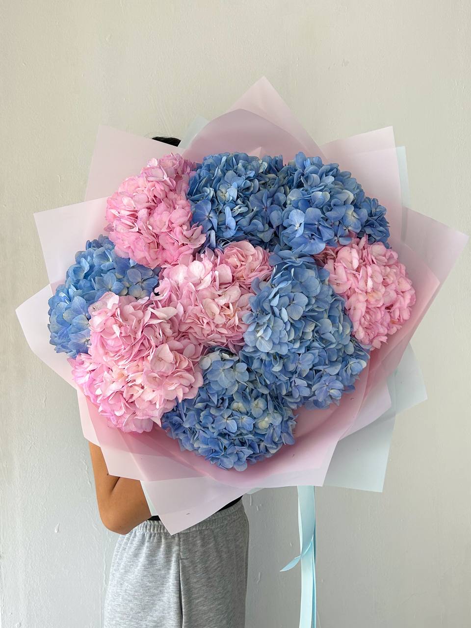 Моно букет из 9 гортензий в оформлении. Если Вы хотите подарить незабываемые эмоции дорогому человеку — закажите доставку цветов в Zakazbuketovkz