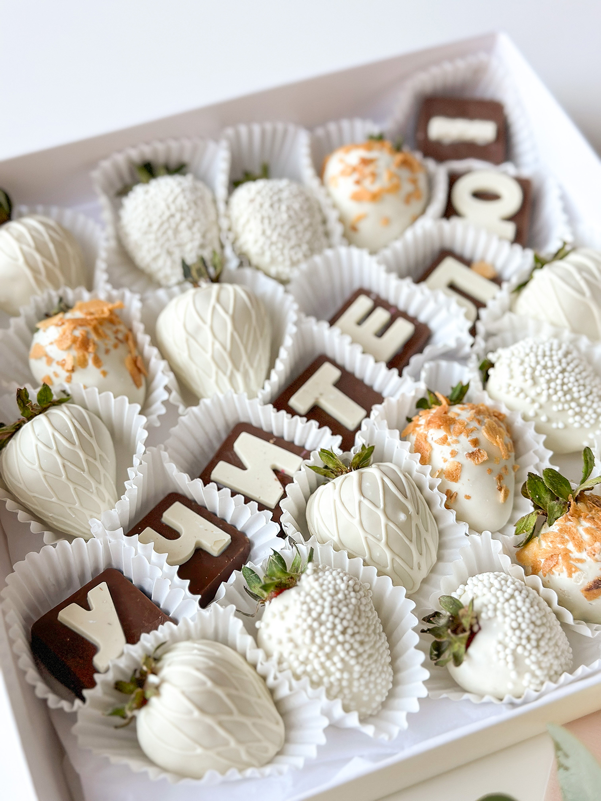 Клубника в шоколаде - 16; Коробочка для клубники - 1; Шоколадные буквы - 8;
