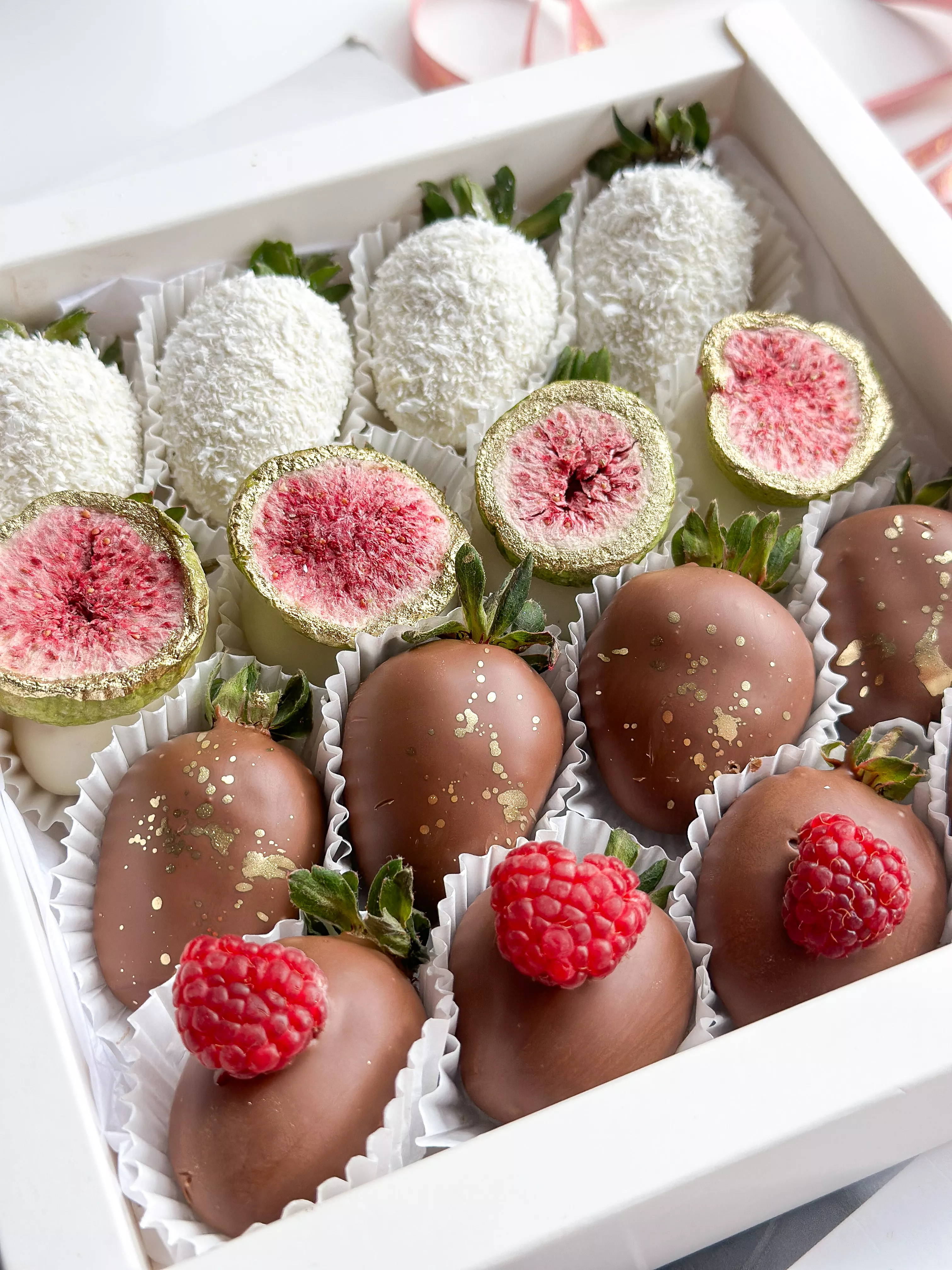 Клубничный бокс "Превосходство" свежая клубника в молочном и белом шоколаде. Порадуй своих любимых.