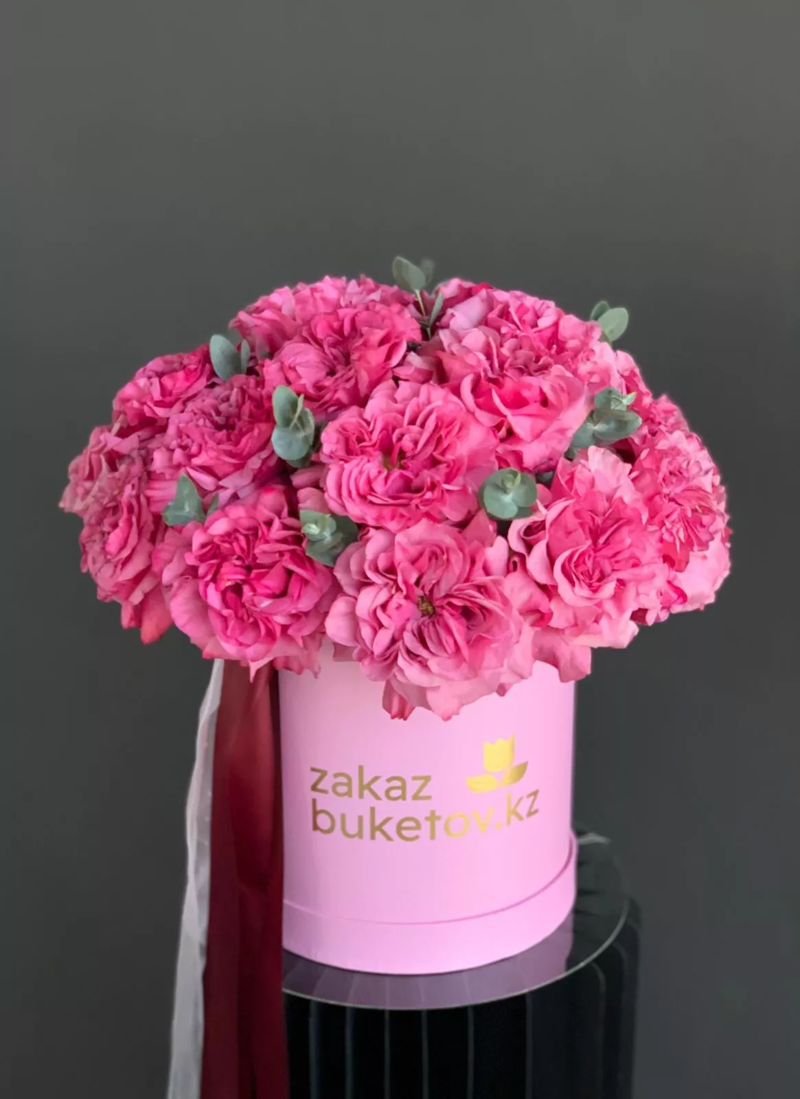 25 роз с эвкалиптом в коробке. Если Вы хотите подарить незабываемые эмоции дорогому человеку — закажите доставку цветов в Zakazbuketovkz