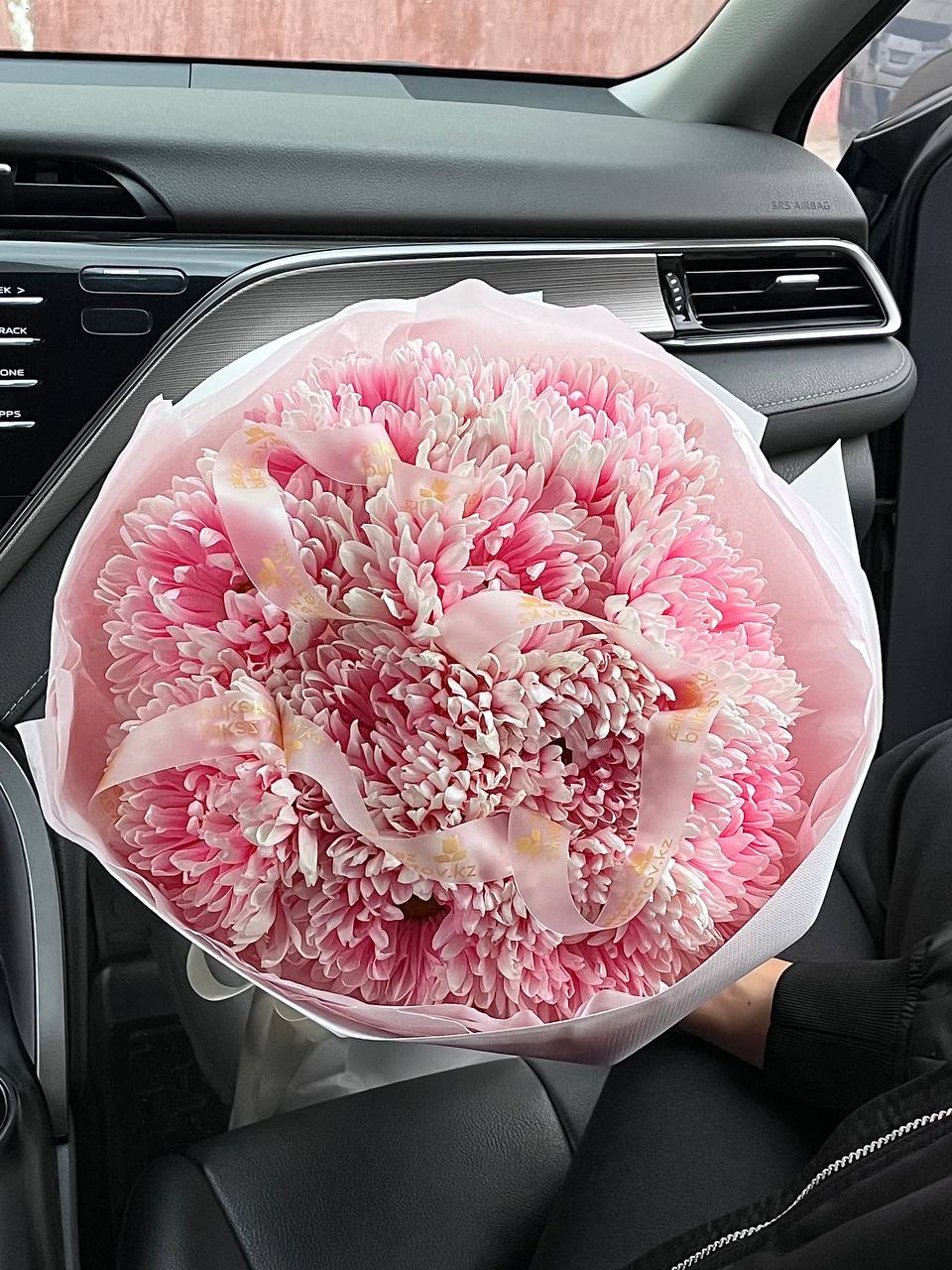 Шикарный букет из объемных нежных розовых хризантем в стильном оформлении не оставит равнодушным ни одну женщину. Дарите радость вместе с Zakaz Buketov.