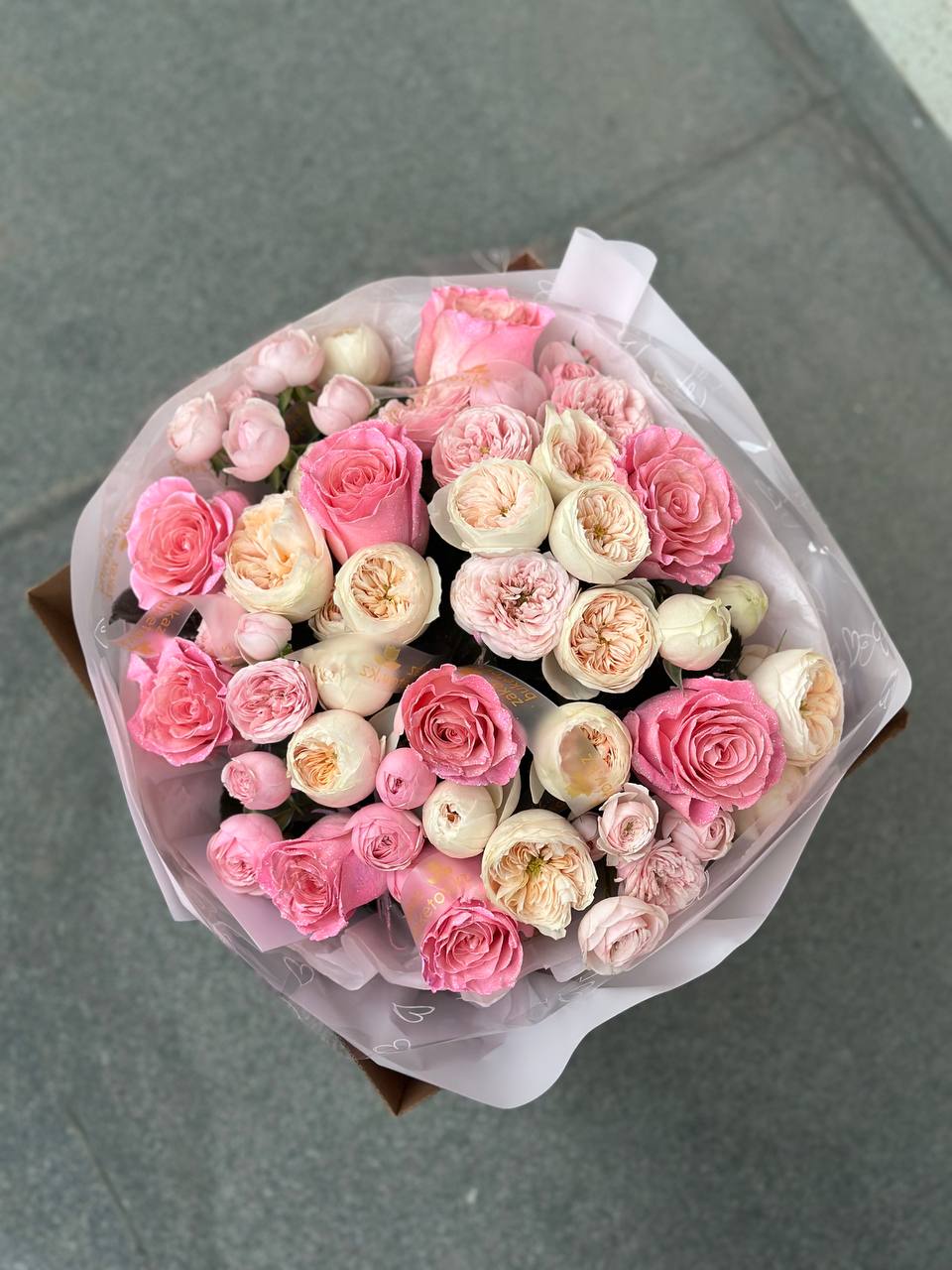 Состав выдерживается в полном соответствии с указанным составом композиции. При покупке евробукета, возможно, несовпадение цветовой гаммы букета, представленного на фотографии.