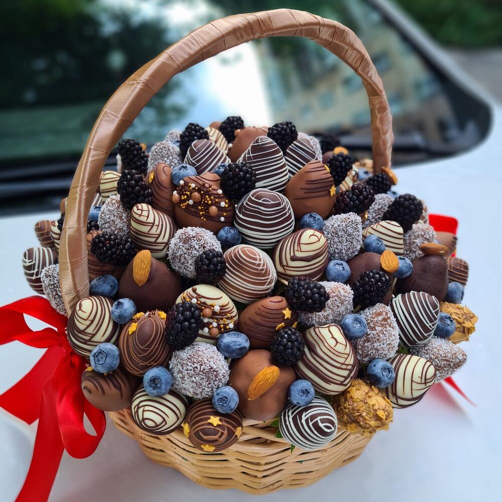 Восхитительная клубничная корзина - идеальное сочетание вкуса и роскоши! Аппетитная клубника, покрытая ароматным итальянским шоколадом, станет настоящим украшением любого стола, а свежие ягоды и орехи добавят свежести и сытности. Такой необычный подарок удивит и порадует любого получателя, подарив незабываемые моменты наслаждения.