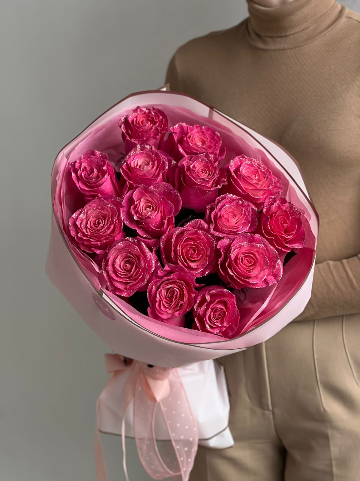 15 роскошных блестящих роз в насыщенном малиновом оттенке — это эффектный акцент страсти и красоты. Этот букет воплощает в себе чарующую элегантность и приносит в дом неповторимое сияние любви. Доставка от ZakazBuketov обеспечит свежесть и красоту цветов.