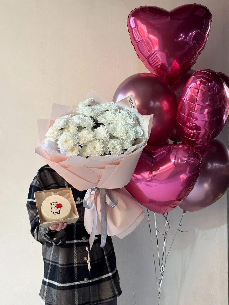 Сет "Превосходство" c 7 шарами букетом хризантем и бенто тортиком