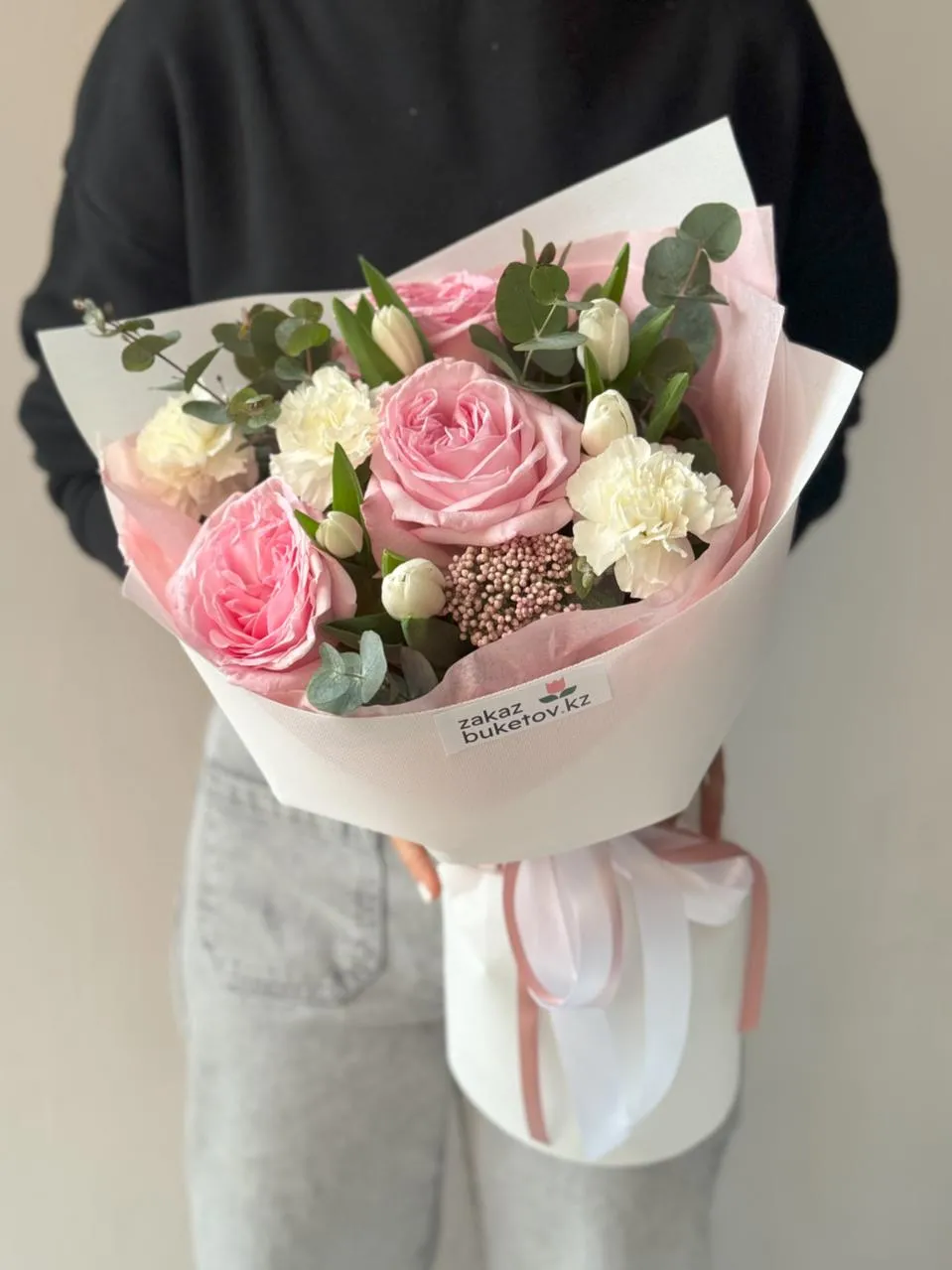 Букет "Salma" из гвоздик, роз и тюльпанов - это изысканное сочетание красоты и изящества. Гвоздики придают букету нотки традиции и изысканности, розы символизируют страсть и романтику, а тюльпаны добавляют свежести и весеннего очарования. "Salma" - это не просто букет, а проявление элегантности и прекрасного вкуса, способное подарить радость и восхищение своему получателю.