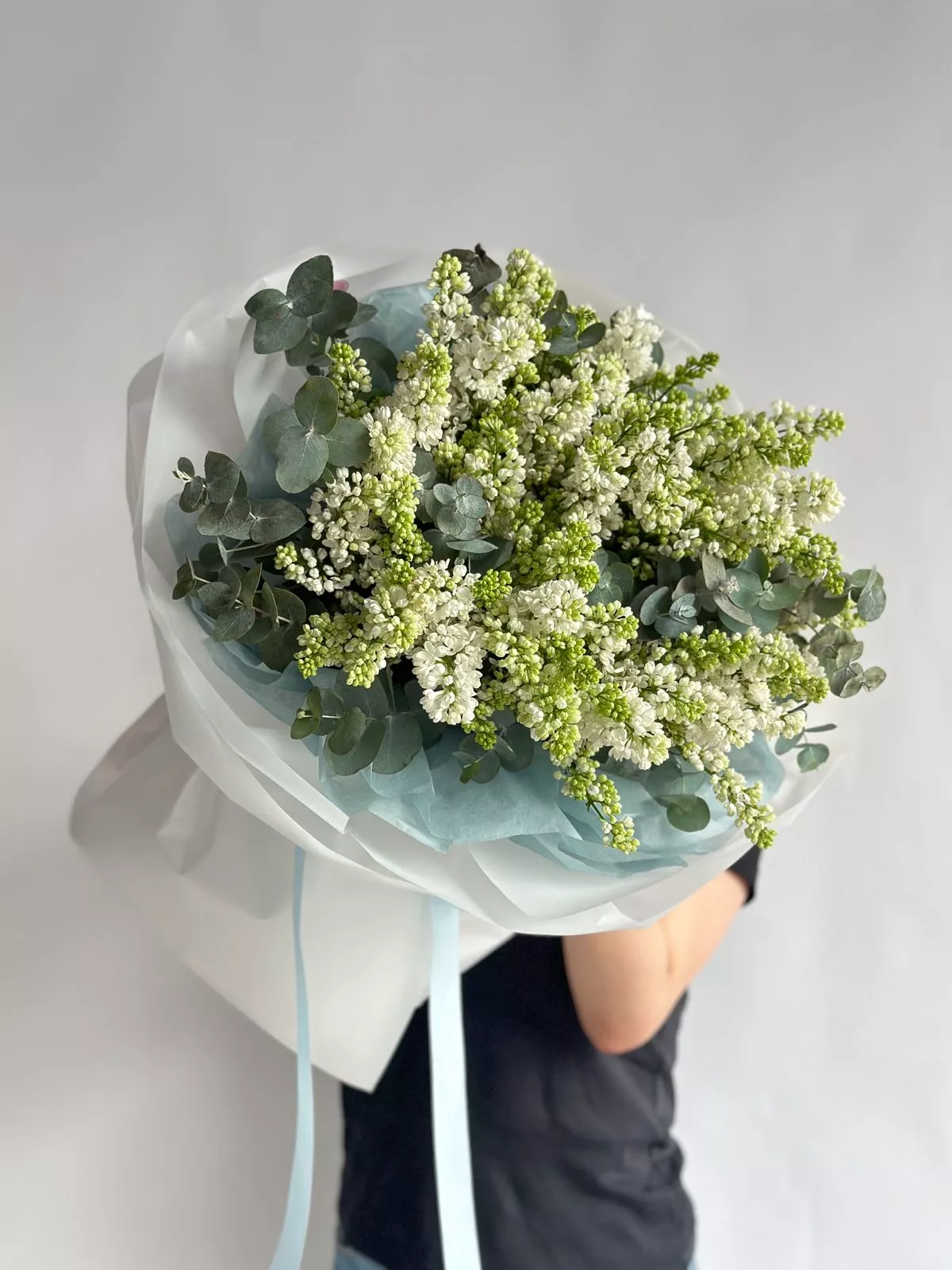 Букет из белой сирени с эвкалиптом - это нежное и изысканное сочетание природной красоты. Белая сирень символизирует чистоту, нежность и мир, в то время как эвкалипт придает букету свежесть и аромат. Такой букет станет замечательным подарком для любого случая, добавляя атмосферы уюта и элегантности.