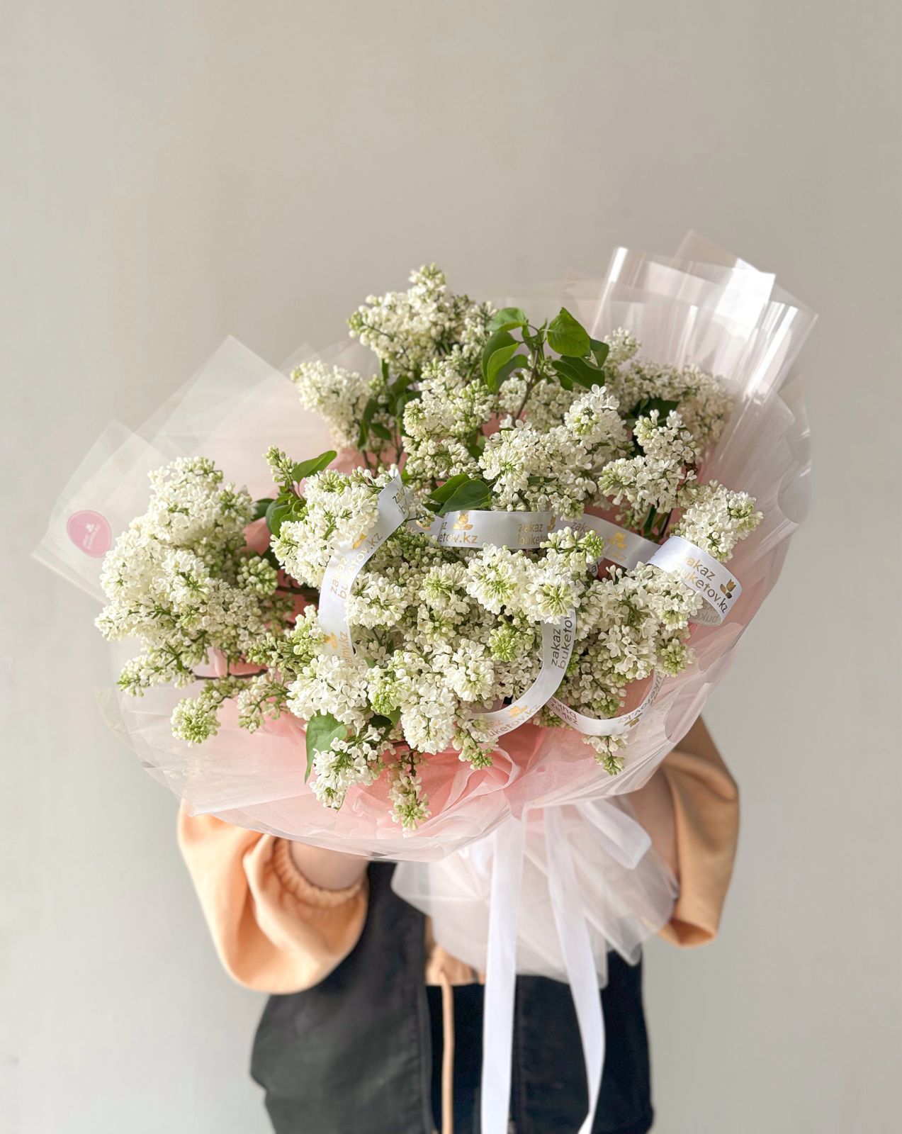 Букет из шикарной белой сирени — это воплощение нежности и красоты. В нём собраны крупные и яркие цветки, которые напоминают о солнечной весне. Зелёные листья украшают букет, делая его ещё более гармоничным и привлекательным.