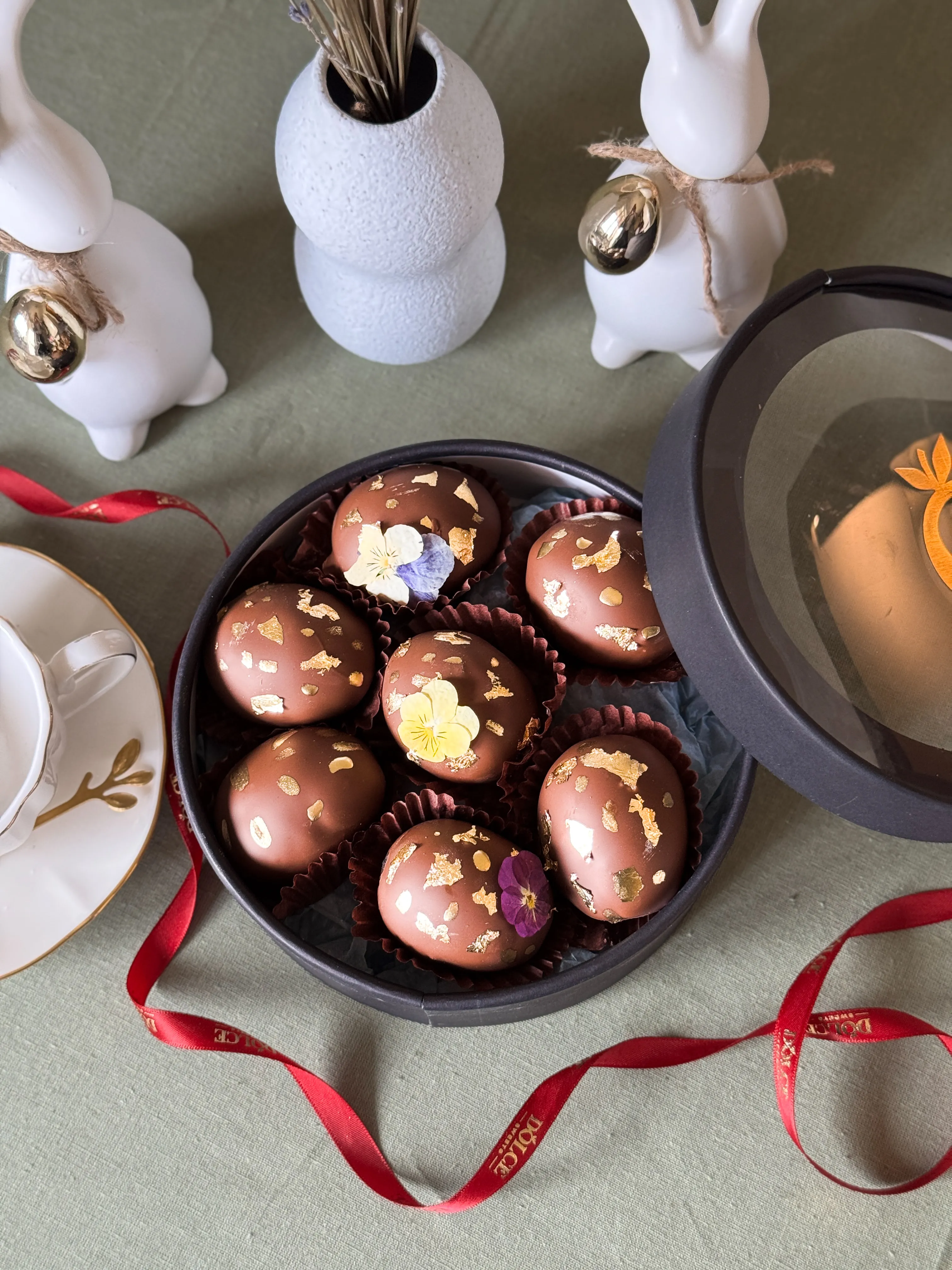 В яркой коробке вас ждут аппетитные кейк-попсы — нежные бисквитные десерты со специальным дизайном к пасхе. Бокс не оставит равнодушным ни одного сладкоежку!