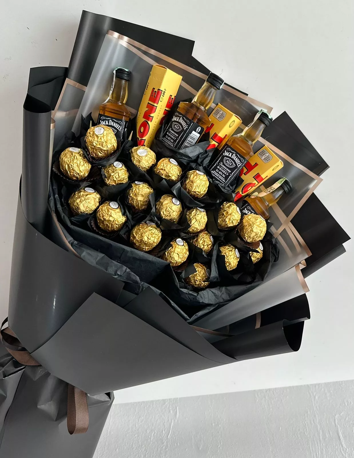 Мужской букет «Аполлон» — это стильный и оригинальный подарок для любого мужчины. В нём собраны шоколадные сладости и мини бутылочки виски. Этот букет станет незабываемым презентом на любой праздник и подчеркнёт ваше внимание и заботу.