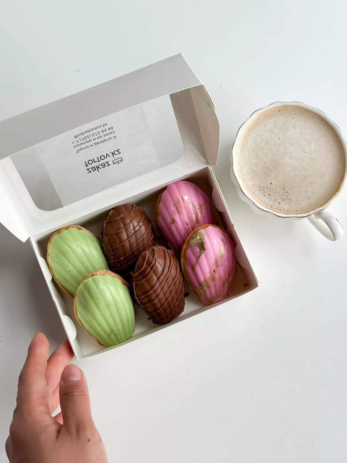 Печенье мадлен в ассортименте - 6; Коробка для прирожных Мадлен - 1;