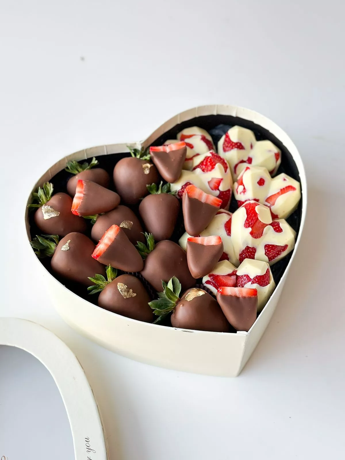 Клубничный бокс "Агата" из клубники в шоколаде в коробке в виде сердца