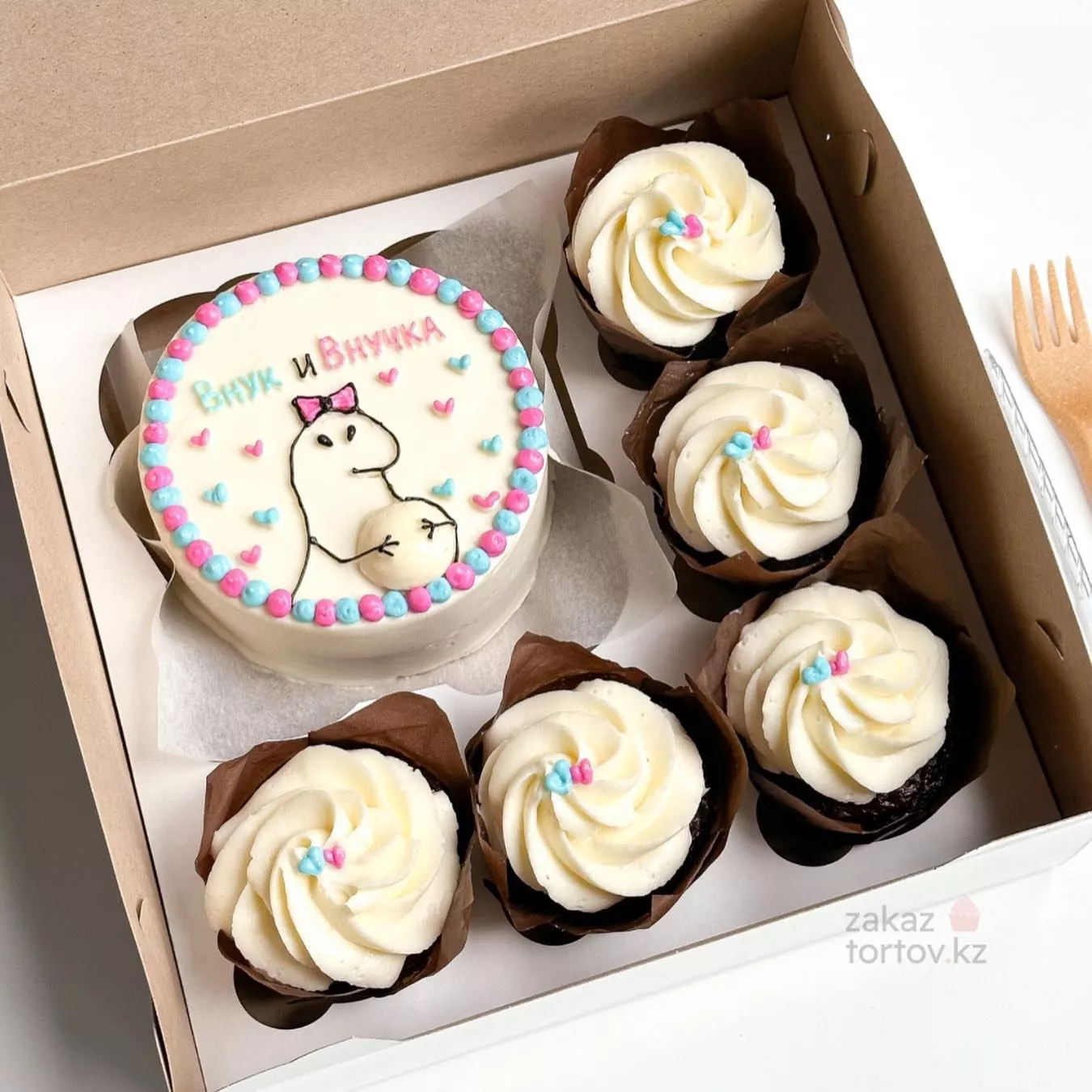 Набор из бенто-торта и капкейков — идеальный подарок для любого торжества. В набор входят натуральные ингредиенты, такие как яйца, творожный сыр, сливки, молоко и ягодное пюре. Капкейки и бенто-торт оформлены в едином стиле и имеют разные вкусы на выбор.