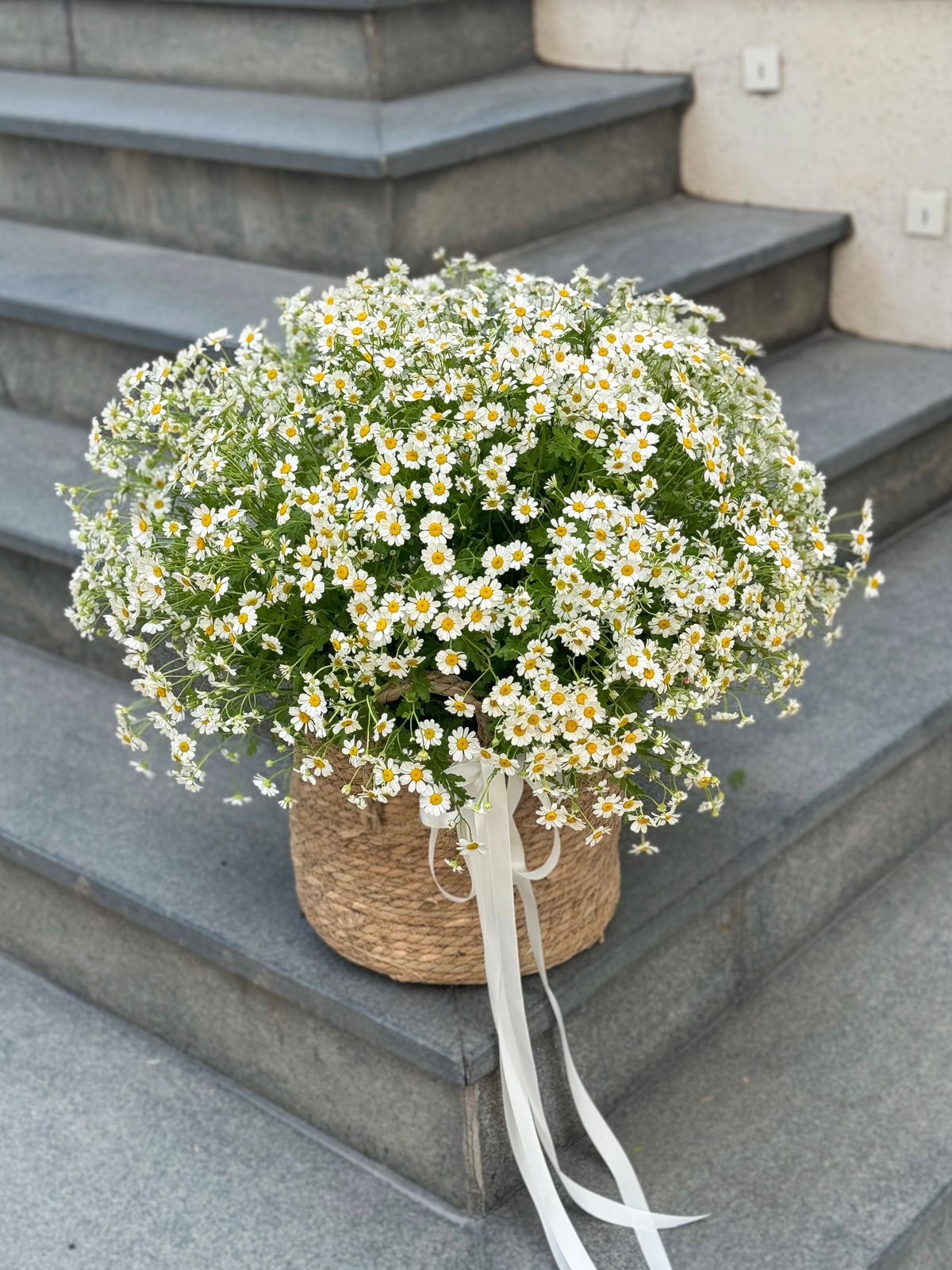 Композиция из кустовых ромашек в корзине — это яркий и нежный букет, состоящий из множества маленьких цветочков. Ромашки символизируют радость, счастье и солнце, а их маленькие размеры делают композицию воздушной и лёгкой.