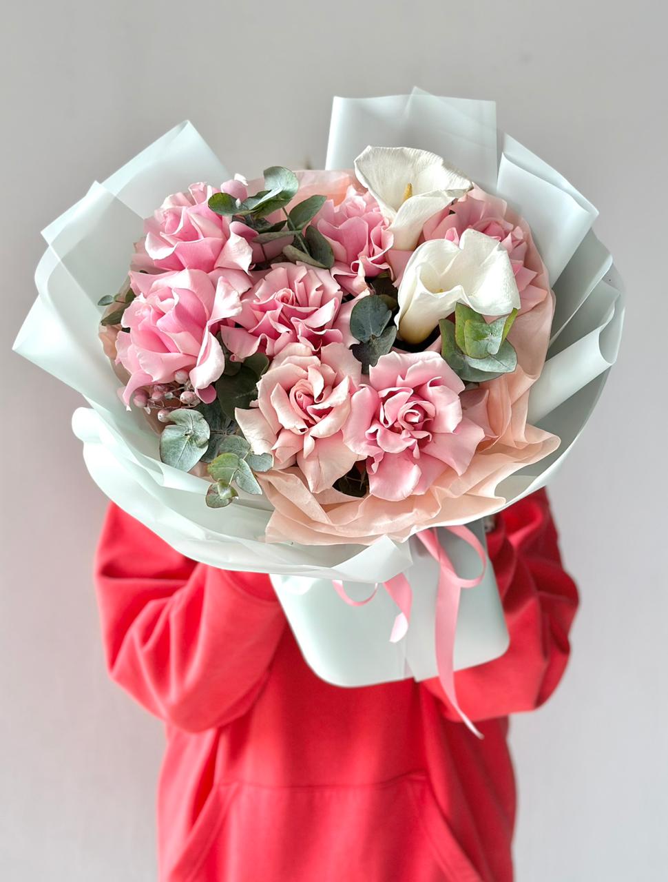 Букет из роз и калл — это гармоничное сочетание нежности розовых роз и изысканности белых калл. Такой букет станет прекрасным подарком на любой праздник и подчеркнёт вашу любовь и уважение к получателю.