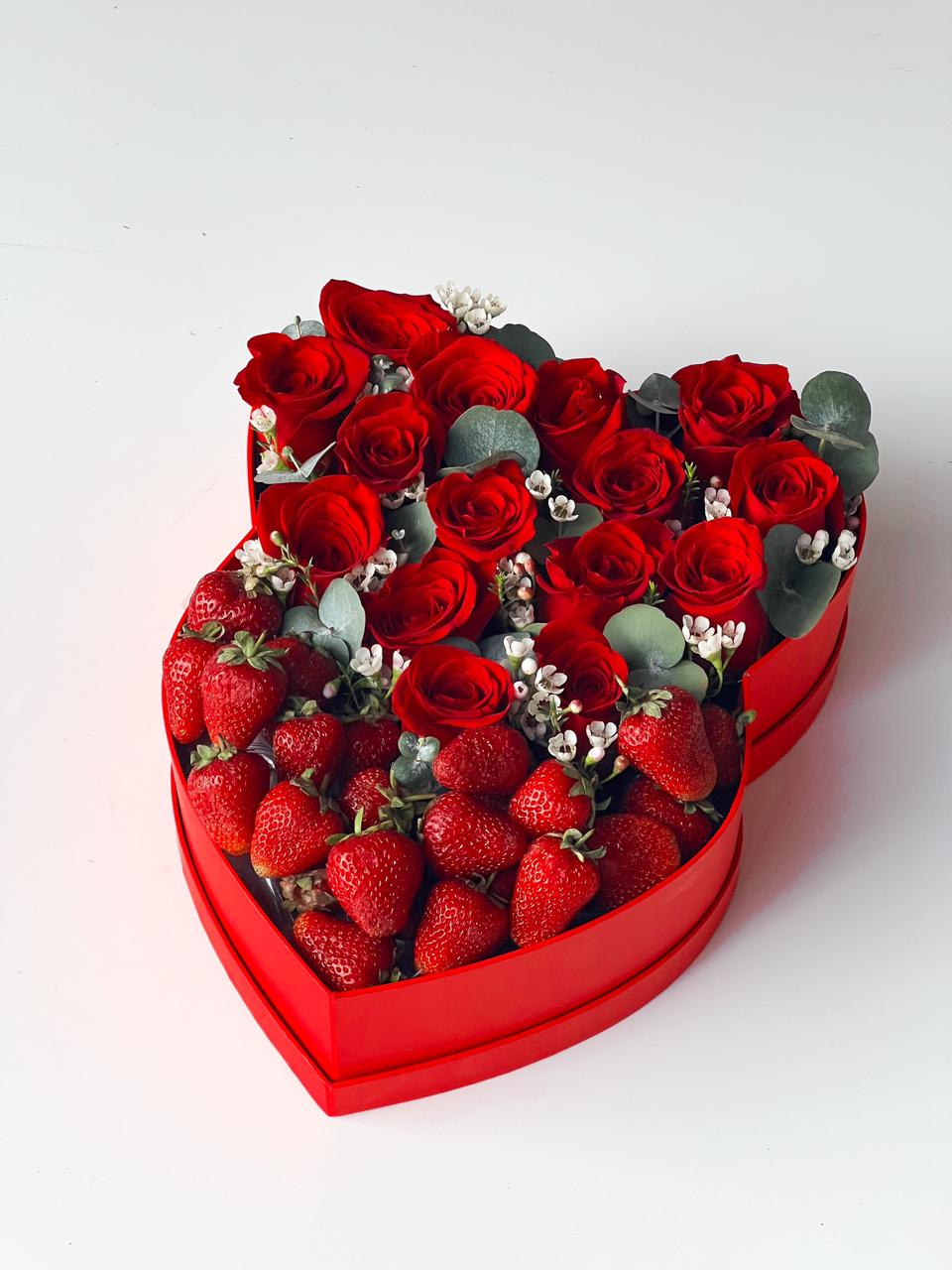 Коробка свежей клубники с розами — это яркий и вкусный подарок, который порадует любого. В ней вы найдёте отборные ягоды клубники, нежные розы и ароматный эвкалипт. Этот подарок подойдёт для любого случая и станет незабываемым впечатлением для получателя.