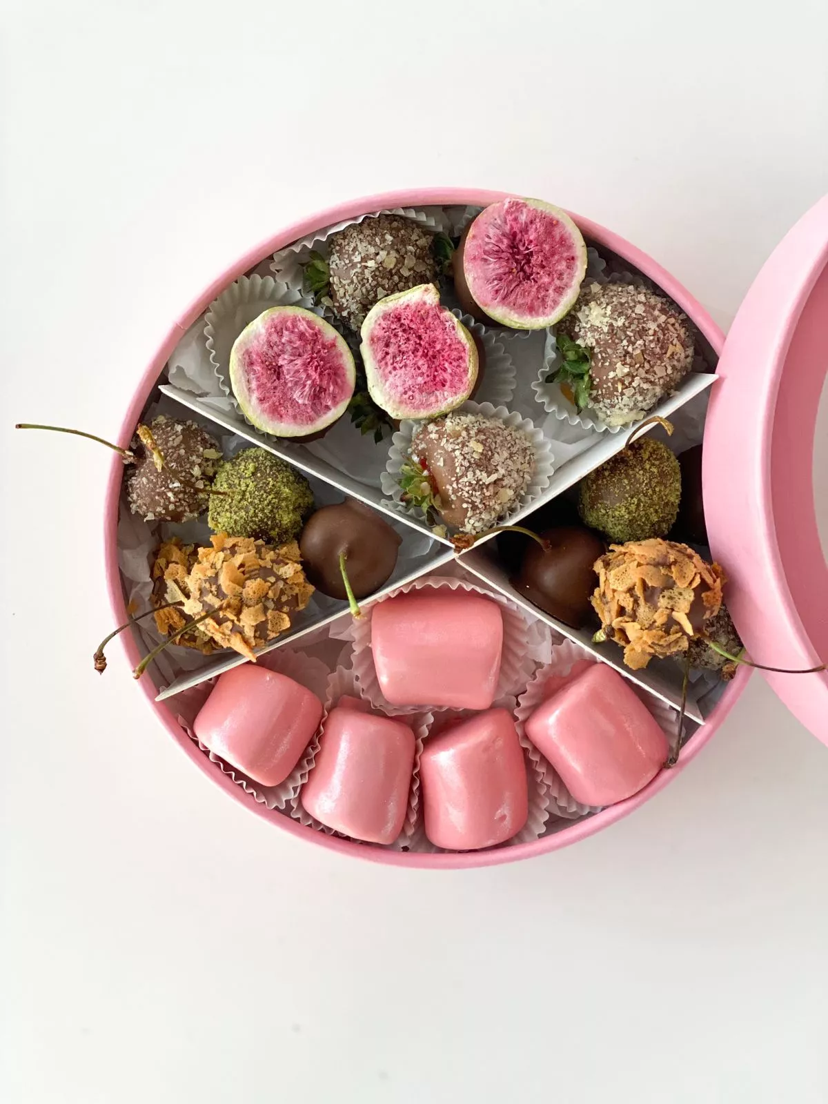 В этой коробке вы найдёте бананы, вишню и клубнику в шоколаде. Идеальный подарок для любителей сладкого и гурманов.