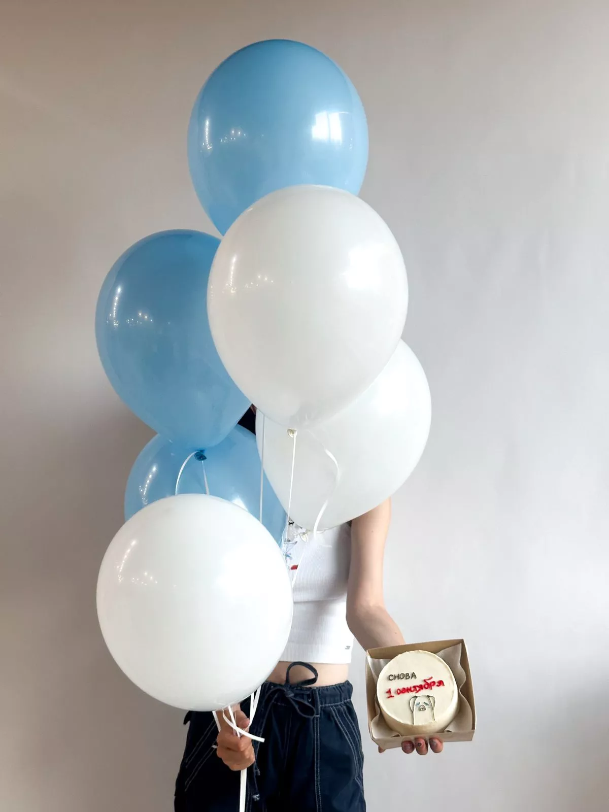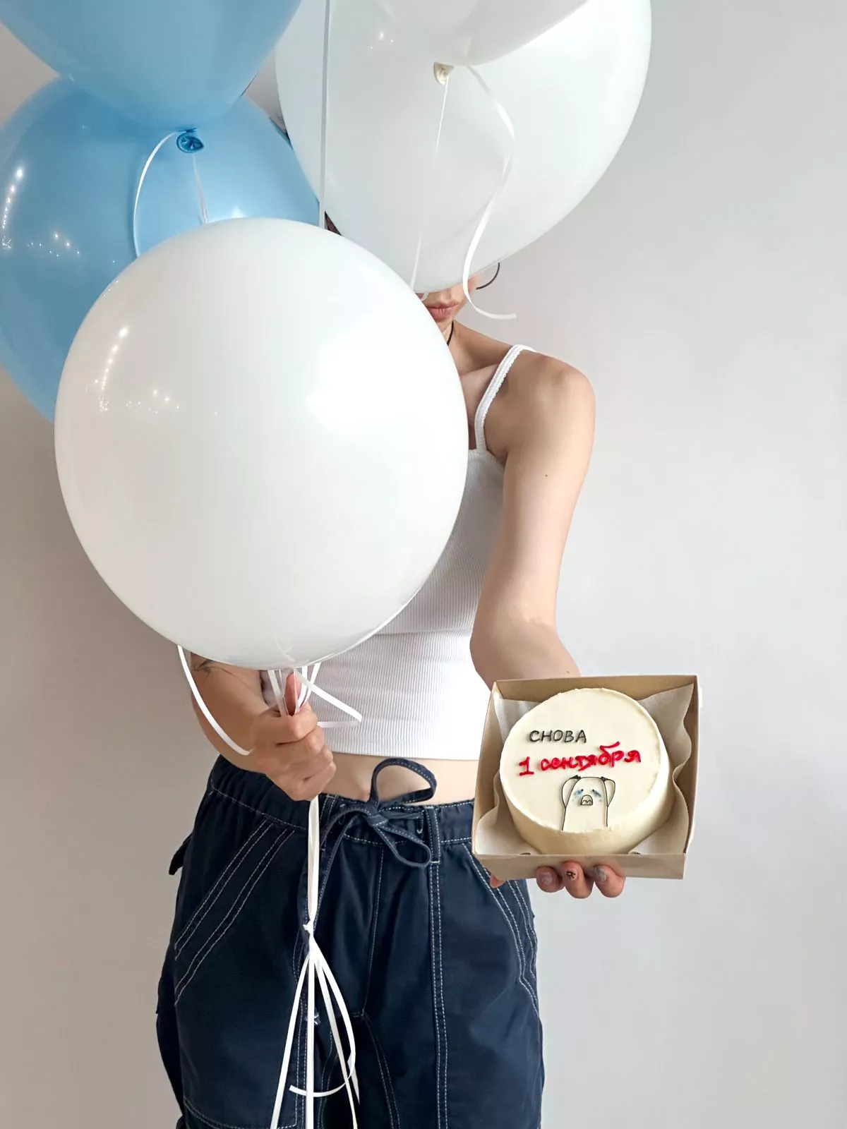 Сет из воздушных шаров в бело-голубых тонах и бенто-тортика — идеальное сочетание для празднования 1 сентября. Воздушные шары добавят радости и волшебства, а бенто-тортик станет вкусным угощением для учеников и учителей.