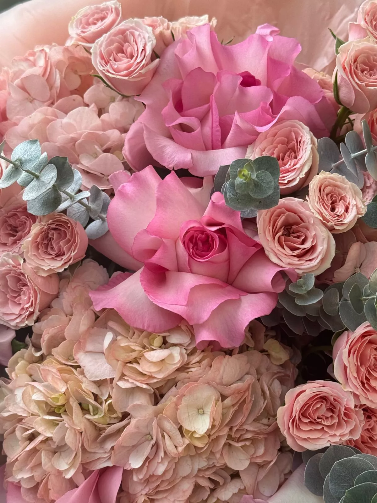 Букет из гортензий и роз — это гармоничное сочетание нежности и роскоши. Гортензии с их пышными соцветиями добавляют объём и богатство, а розы — элегантность и романтику. Такой букет подойдёт для любого случая и станет незабываемым подарком.