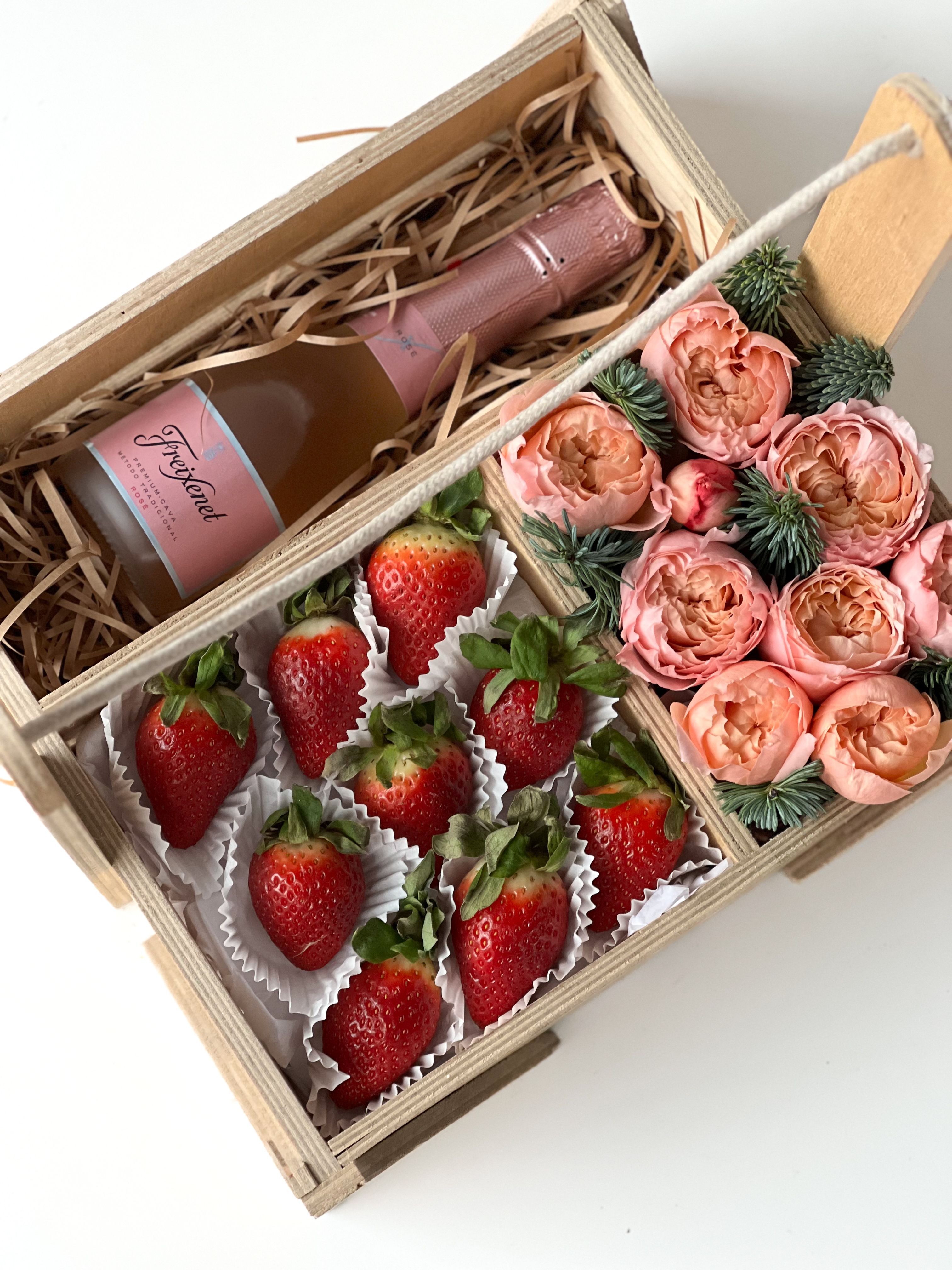 Клубничный ящик «Нежный сюрприз» — подарок, в котором всё продумано до мелочей.