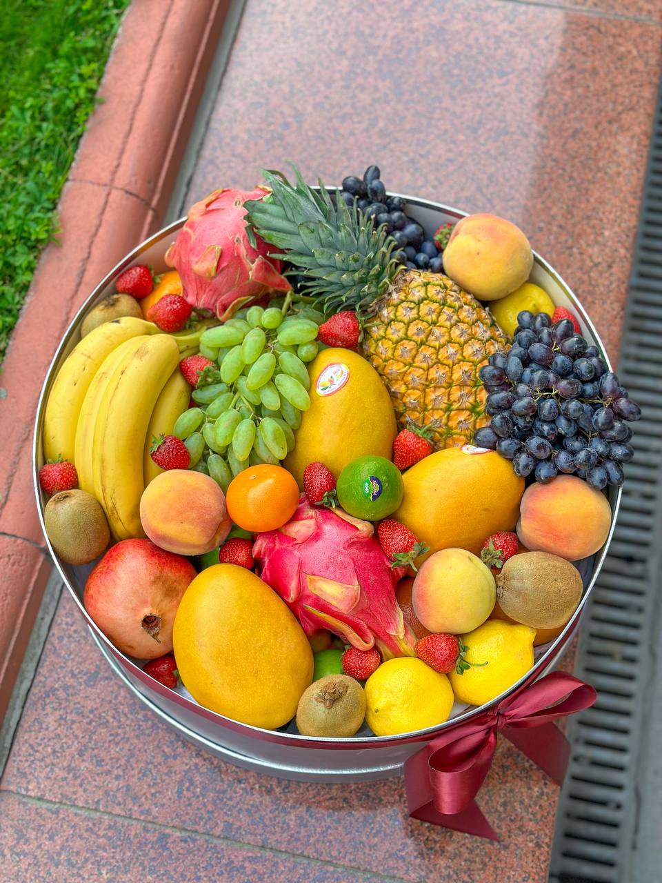 Роскошная коробка с тропическими фруктами. Если Вы хотите подарить незабываемые эмоции дорогому человеку — закажите доставку подарков в Zakazbuketovkz