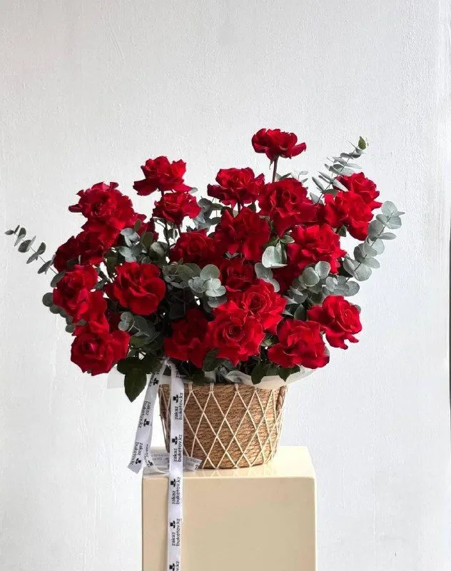 Глубокие бархатные розы и благородный эвкалипт создают атмосферу страсти и силы, сохраняя при этом элегантность. Акцент для тех, кто любит впечатлять.