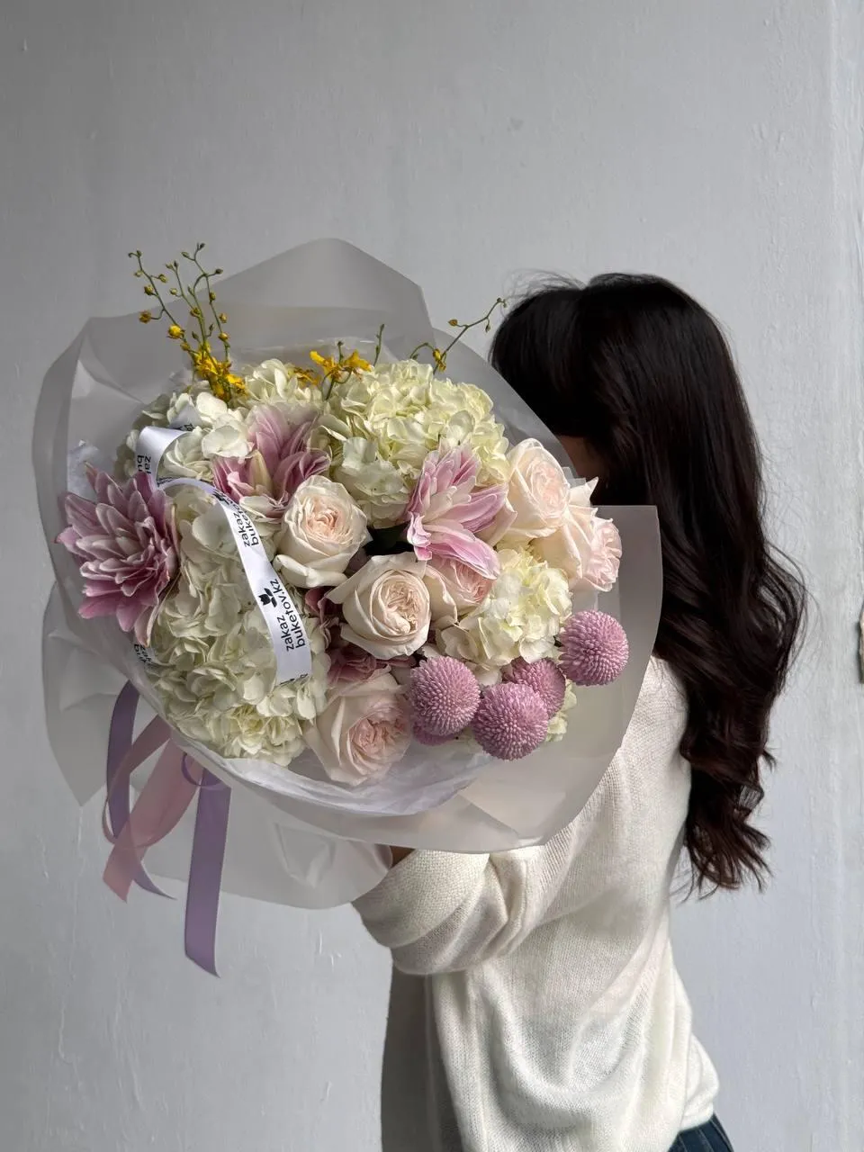 «Хлоя» — букет, созданный в нежнейшей пастельной гамме, где каждая деталь будто дышит утончённостью.