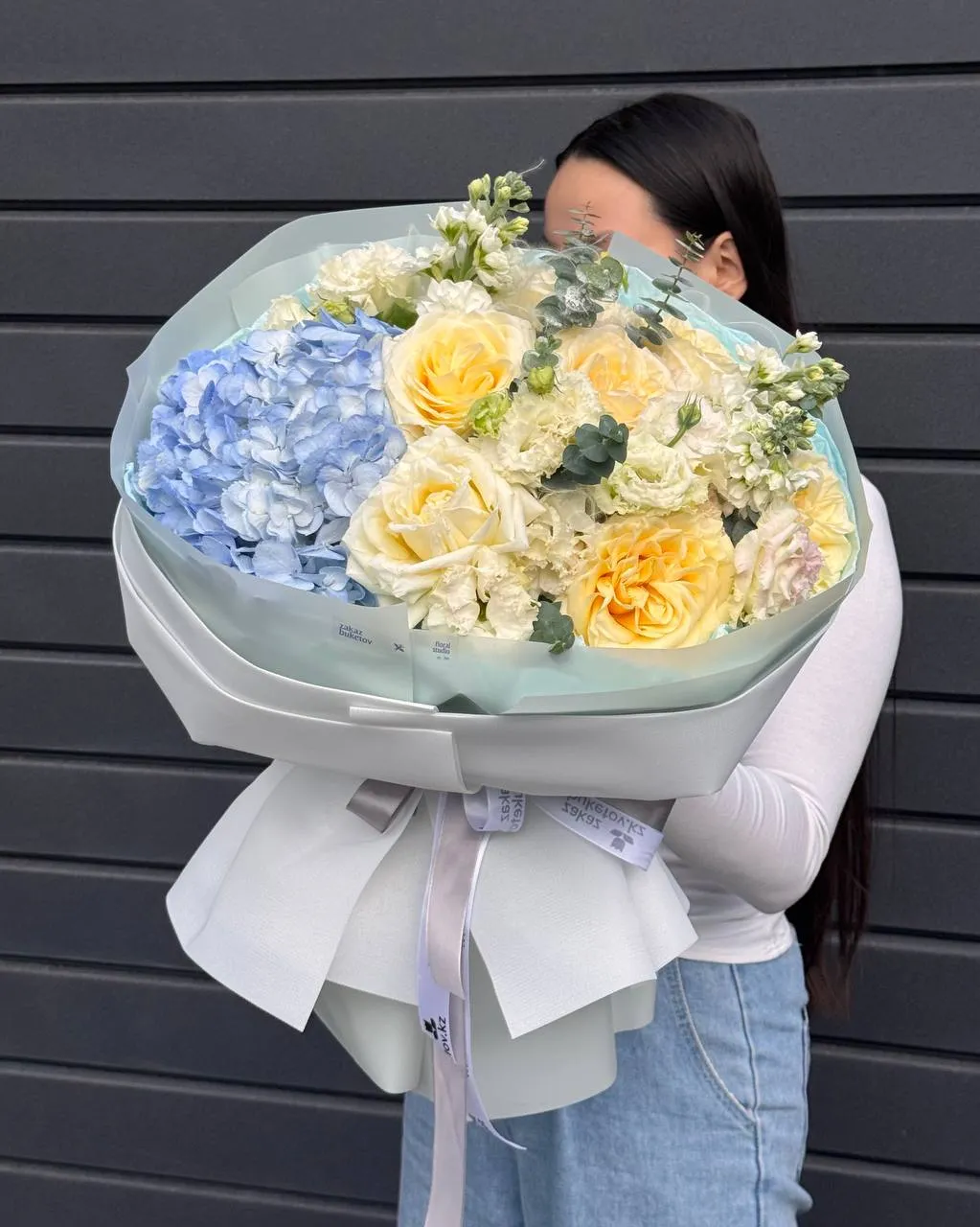 Букет «Nord S» — это лёгкая и утончённая версия северной эстетики, созданная для тех, кто ценит спокойную красоту и гармонию оттенков. Нежная голубая гортензия задаёт свежий тон композиции, голландские розы добавляют мягкое тепло, а лизиантус и маттиола наполняют букет воздушностью и элегантностью. Акценты эвкалипта и стифы подчёркивают природный характер композиции и придают ей современное, аккуратное звучание.