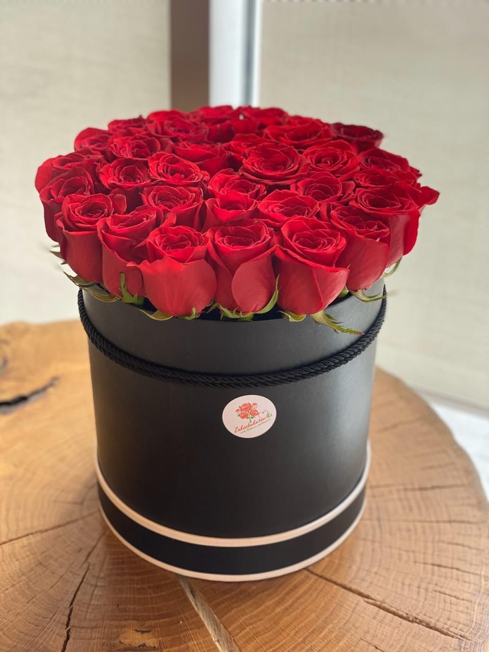 Коробка Cтандартная (из комплекта 2в1) - 1; Открытка - 1; Роза голландская 60 см - 27; Шпажка для открытки - 1;