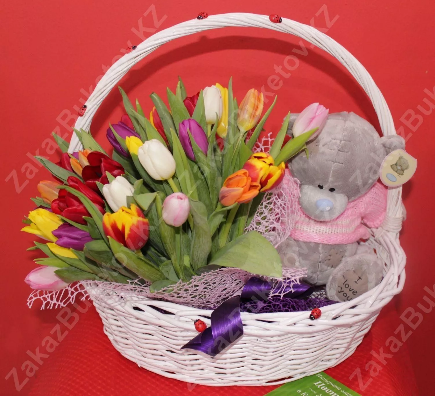 Букет из голландских тюльпанов безупречно элегантно выглядит в корзине. Тюльпаны – воплощение нежности, молодости, свежести. Проявите фантазию или обратитесь к флористам магазина Zakazbuketov, чтобы подарок произвел в душе женщины маленький переворот, не стерся в памяти, уверил ее в искренности, верности, любви.