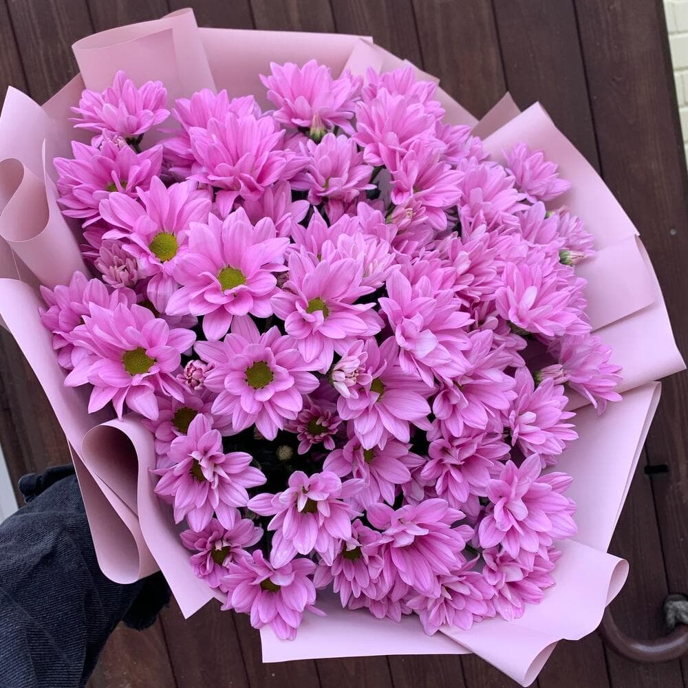 Чудесный стойкий моно букет из 9 кустовых хризантем в стильном оформлении. Если Вы хотите подарить незабываемые эмоции дорогому человеку — закажите доставку цветов в Zakazbuketovkz