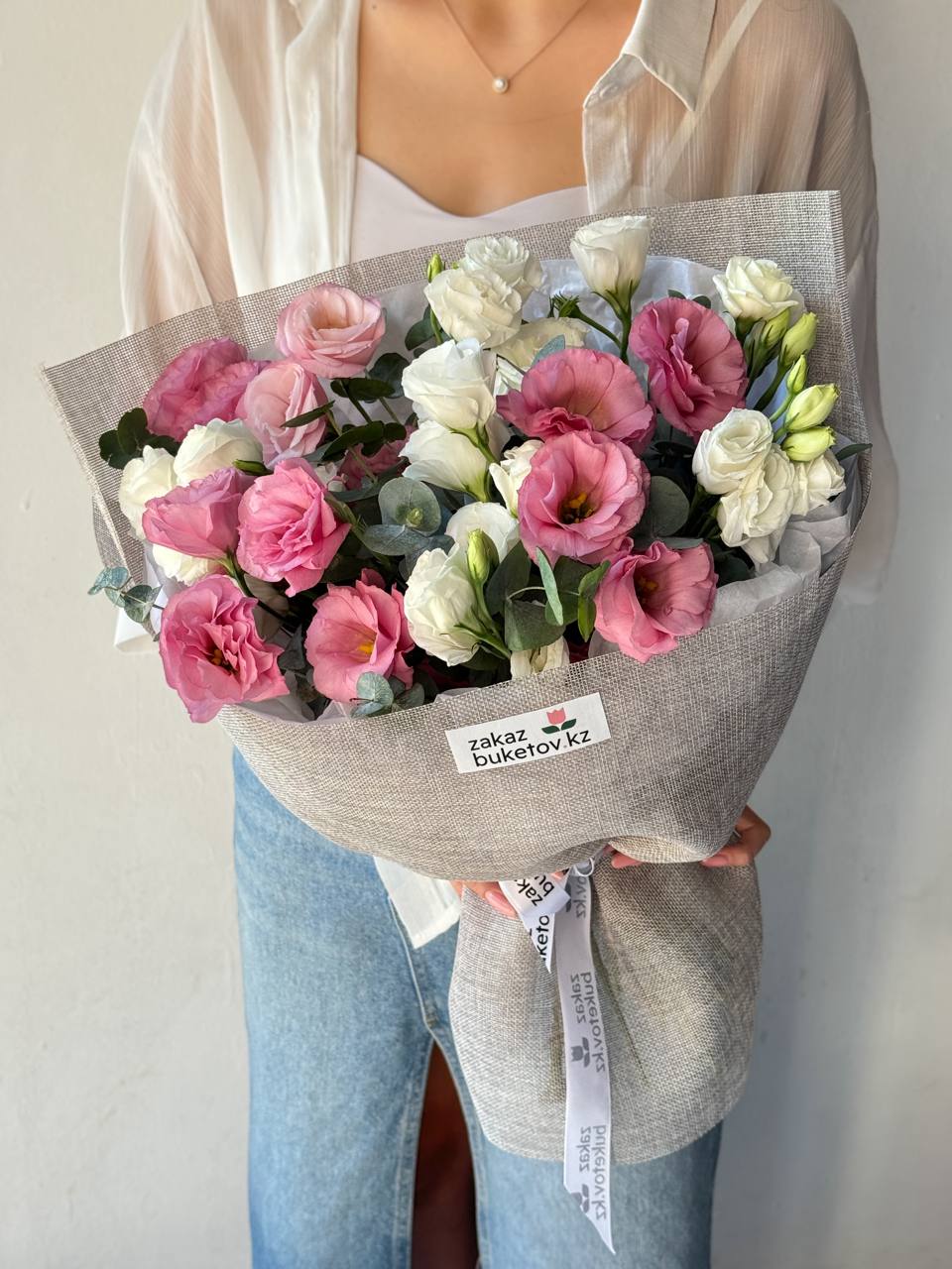 Лизиантус (Израиль) - 9; Калька в ассортименте - 2; Лен - 2; Эвкалипт (Голландия) - 1; Открытка - 1;