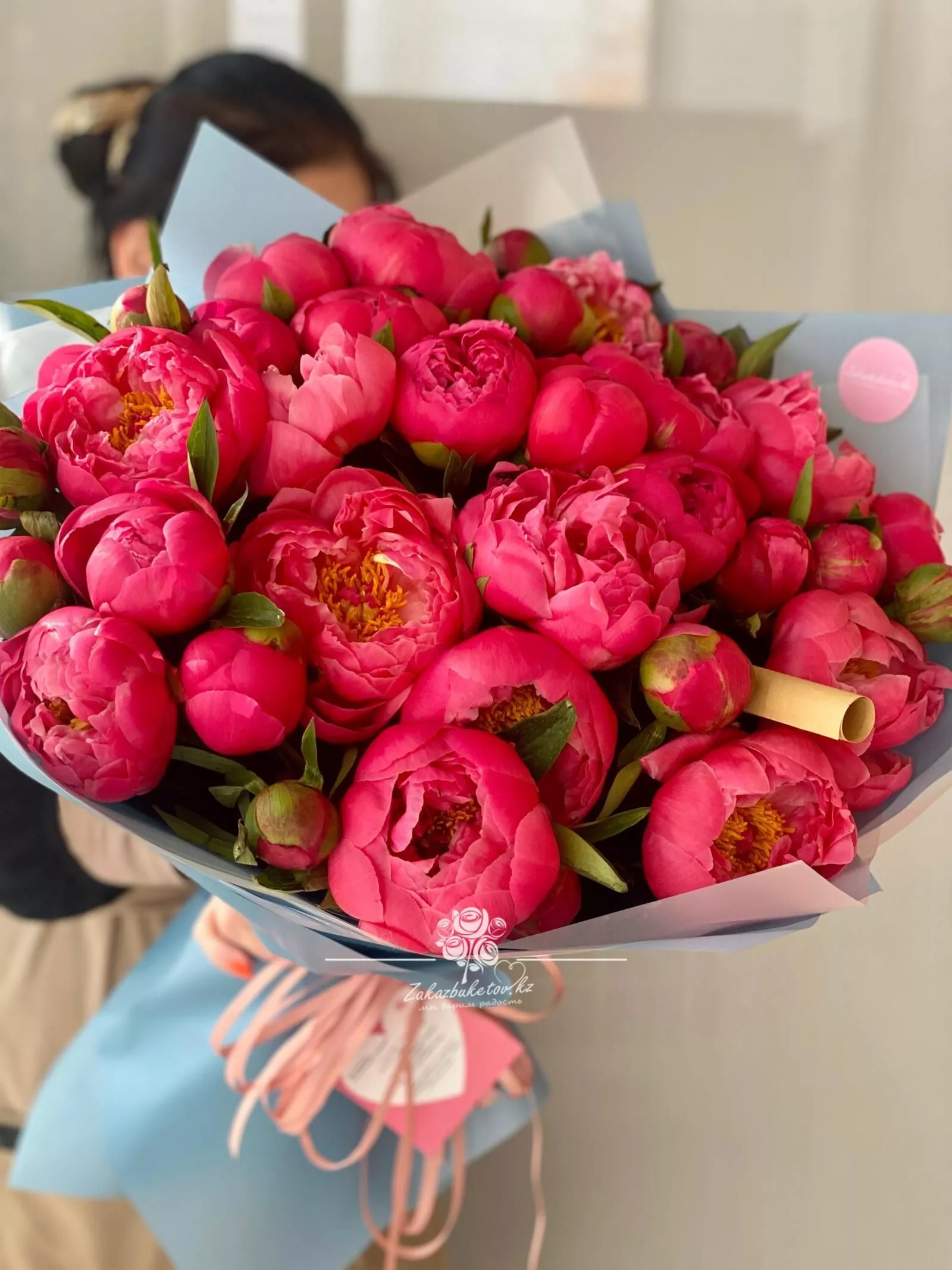 Эффектный букет из голландских пионов популярного сорта "Coral Charm" в небесно-голубом оформлении. Объемные раскидистые ароматные пионы смотрятся элегантно и делают любой букет роскошным. Проявите фантазию или обратитесь к флористам магазина Zakazbuketov, чтобы подарок произвел в душе женщины маленький переворот, не стерся в памяти, уверил ее в искренности, верности, любви.