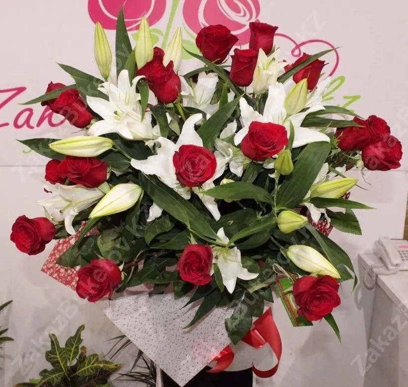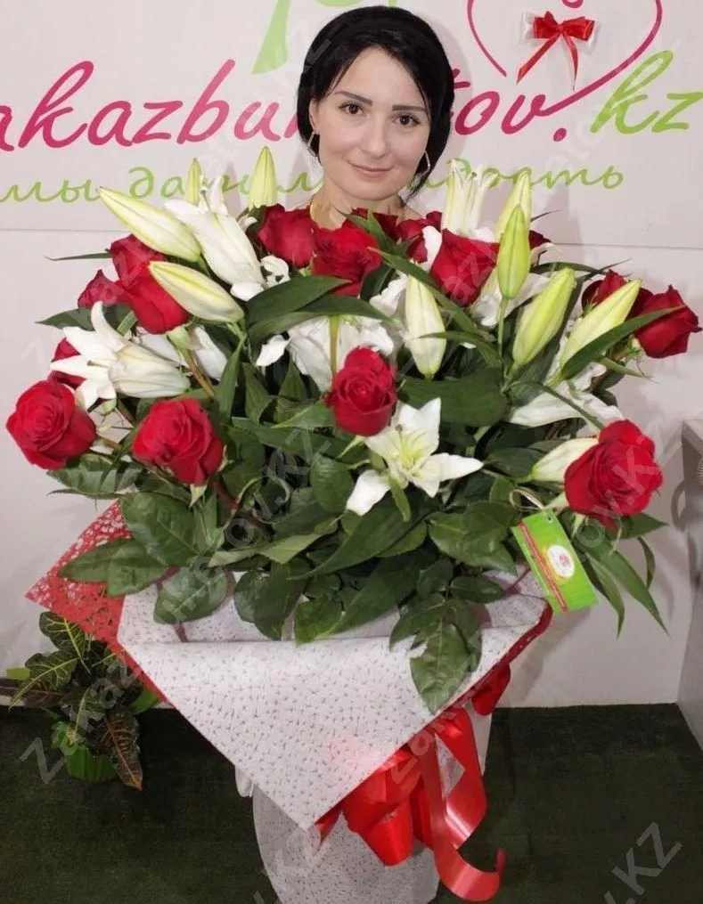 Букет из голландской экзотики в классической европейской форме. Во главе композиции - лилия азиатка. Лилия представляет собой многолетний цветок с крупными бутонами различных оттенков. Проявите фантазию или обратитесь к флористам магазина Zakazbuketov, чтобы подарок произвел в душе женщины маленький переворот, не стерся в памяти, уверил ее в искренности, верности, любви.