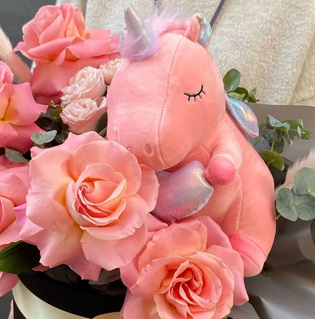 Вывернутые розы - новый тренд. Даже небольшое количество вывернутых роз будет смотреться шикарно в букете или коробке. Подходит для подарка любимой женщине или мамочке. Единорог включен в стоимость букета