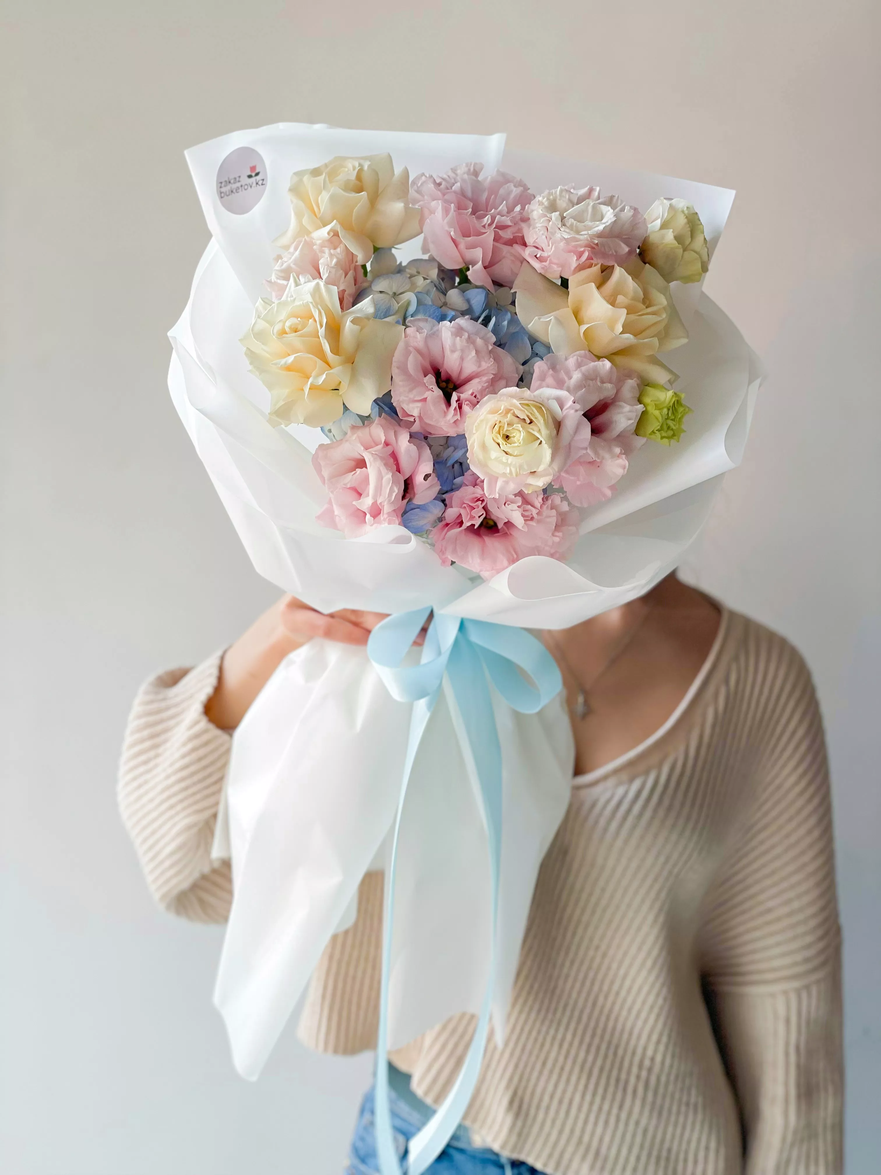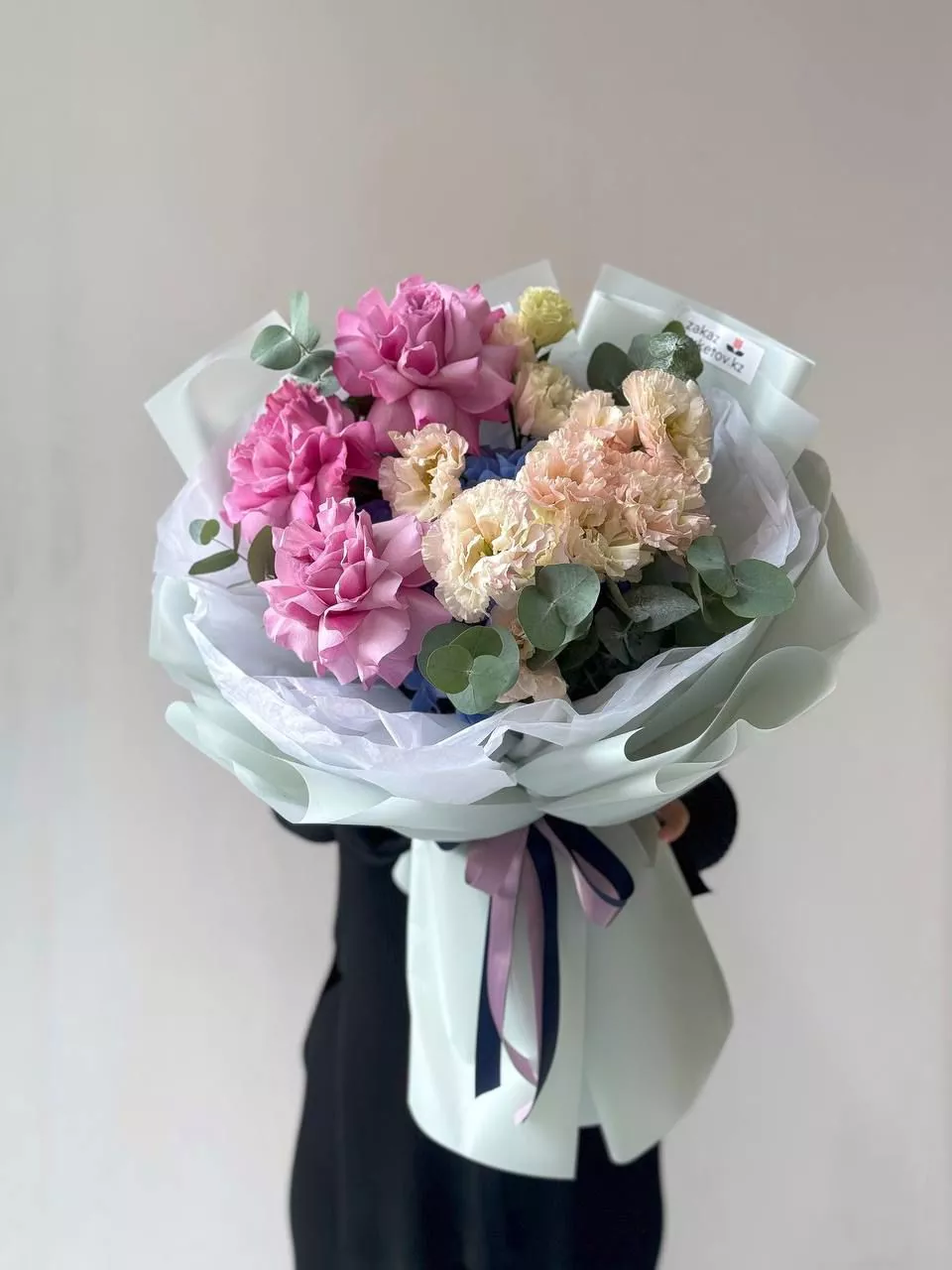 Состав выдерживается в полном соответствии с указанным составом композиции. При покупке евробукета, возможно, несовпадение цветовой гаммы букета, представленного на фотографии.