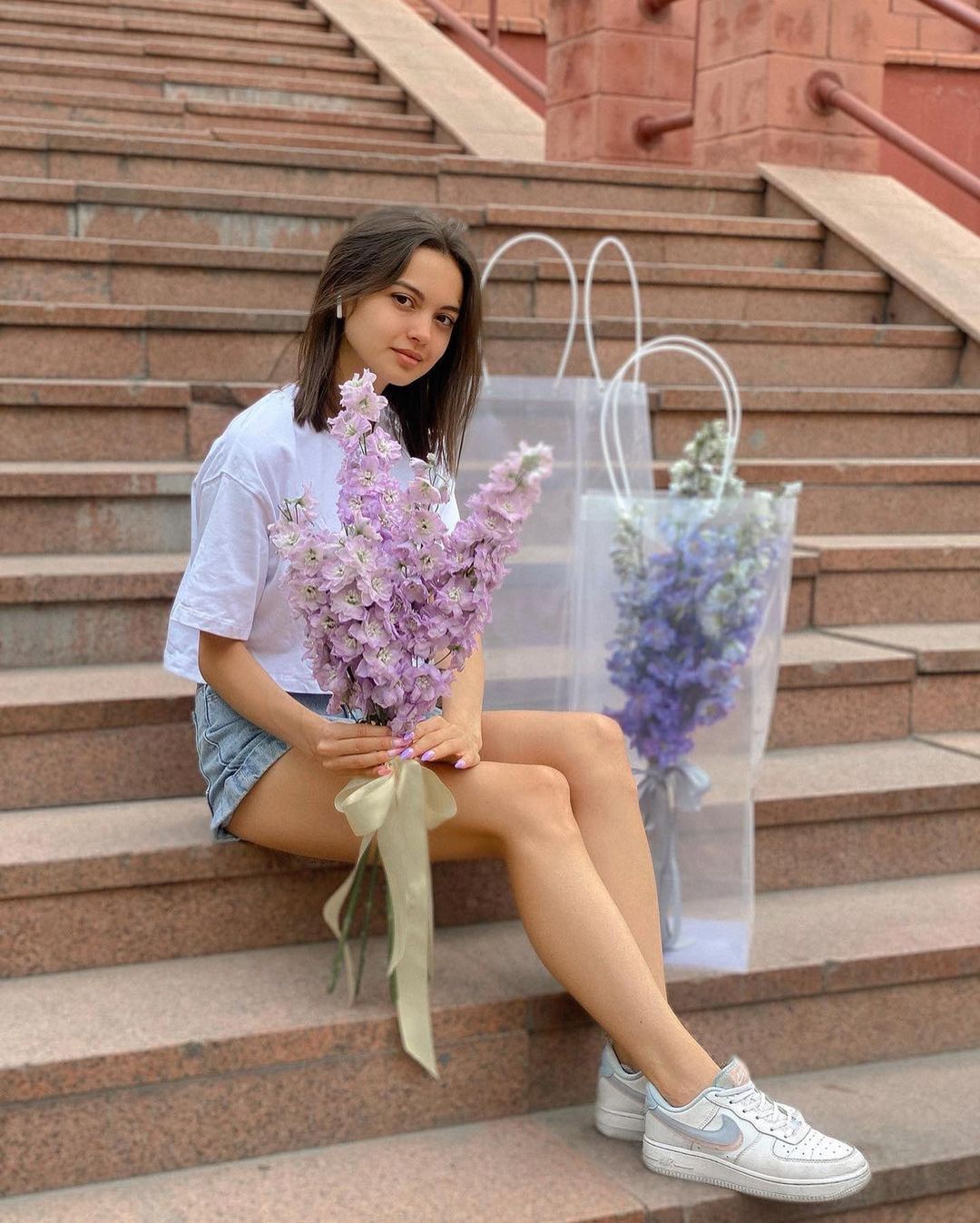 Букет из дельфиниумов в специальном цветочном пакете. Проявите фантазию или обратитесь к флористам магазина Zakazbuketov, чтобы подарок произвел в душе женщины маленький переворот, не стерся в памяти, уверил ее в искренности, верности, любви.