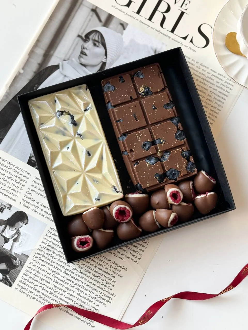 Насладитесь изысканным вкусом в каждом кусочке этого элегантного набора шоколада.