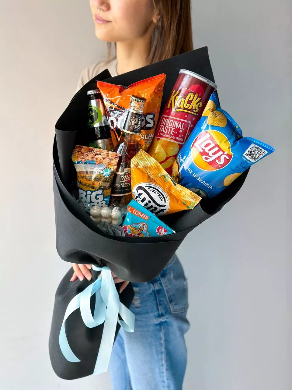 Композиция "Хороший вечер" мужской букет с пивом, чипсами, сухариками и другими снэками