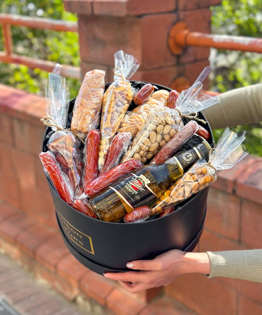 Композиция "Все, как надо" подарочный набор с пивом, колбасками, чипсами и орешками