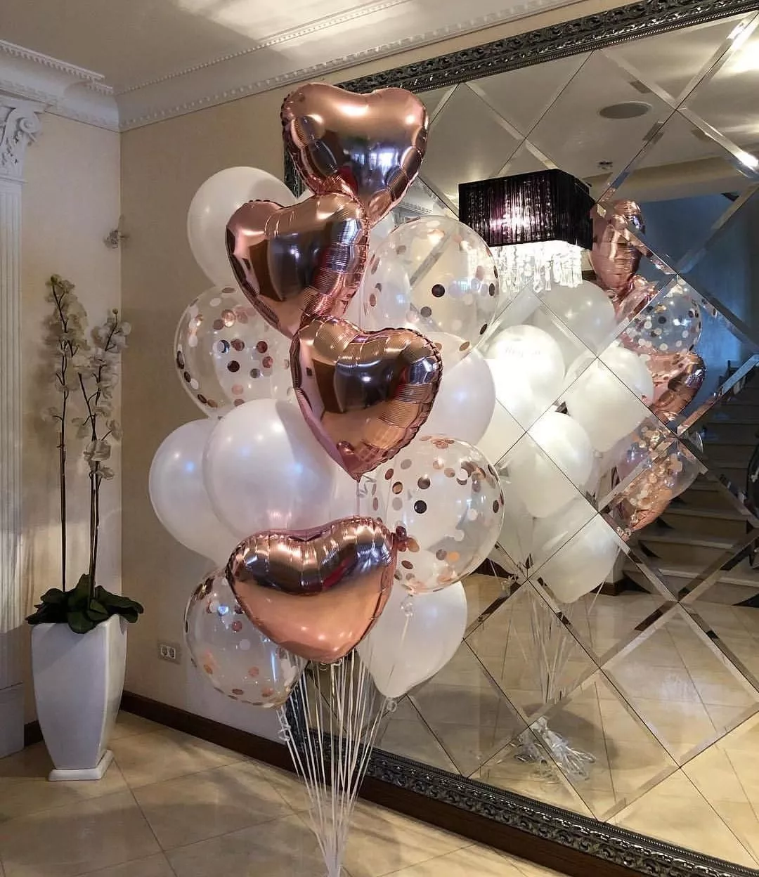 Шар фольга однотонный - 4; 10 однотонных латексных шаров 30 см - 1; Шар с конфетти 30 см - 5; Пакет для транспортировки шаров - 1;